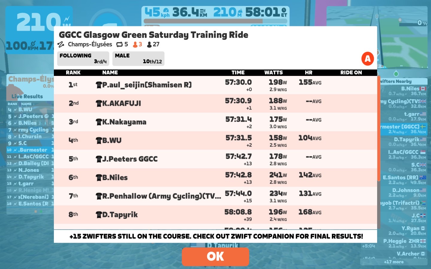 Today I was leading our GGCC team through the virtual streets of the Champs-Élysées on the Zwift riding platform. In total it was a five lap training ride with some good chatting.