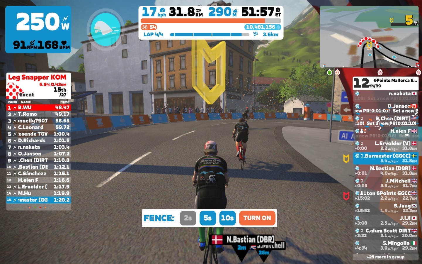 Of course we also had some good sprints right after the “Leg Snapper” rise, first a cool down downhill. Some riders were really hard going for the sprint trophy. In the end C. Sánchezz could make it happen, even tough N. Bastian made it hard for him on every lap.