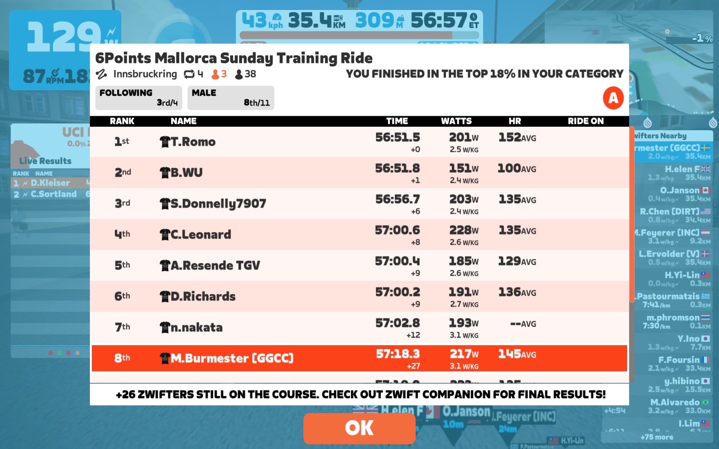 The last lap before the optional mini race I raised the numbers to get some heat into our bodies and blood into our legs. The mini race was a full lap of the Innsbruck ring with a really fair start.
