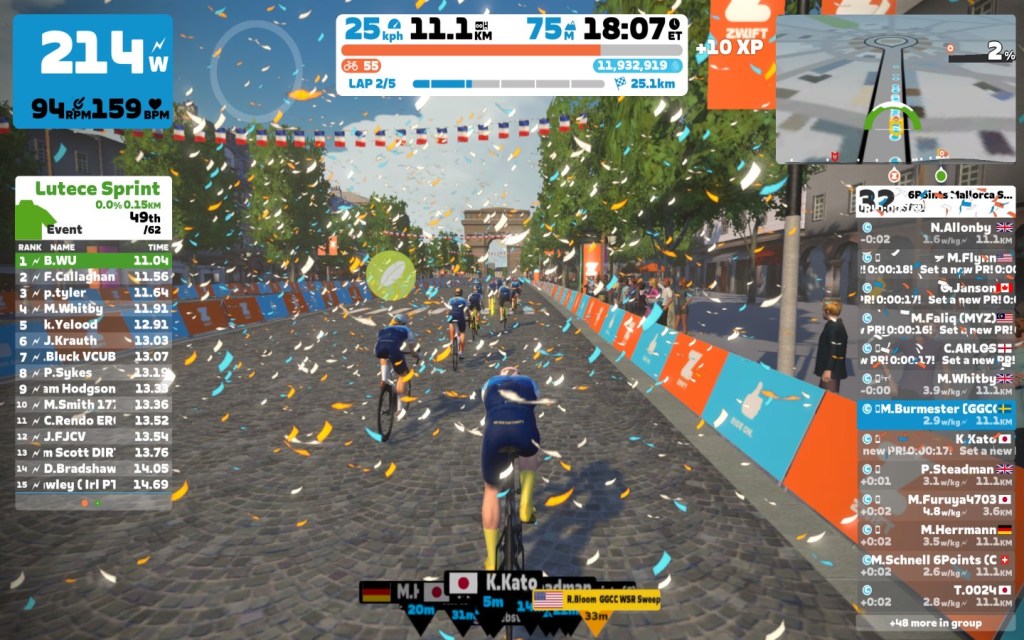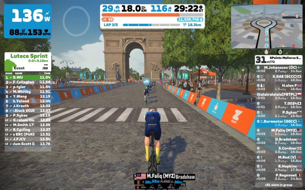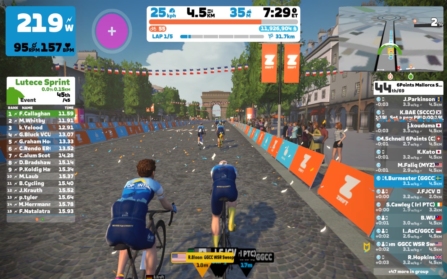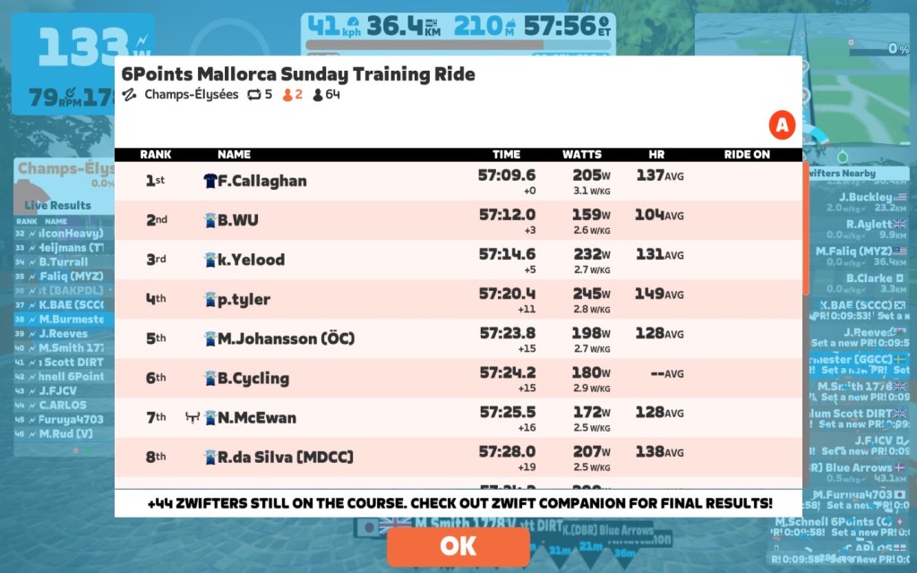 Today Roger B. was leading our 6Points Mallorca team through the virtual streets of the Champs-Élysées on the Zwift riding platform. In total it was a five lap training ride with an optional full lap mini-race at the end.