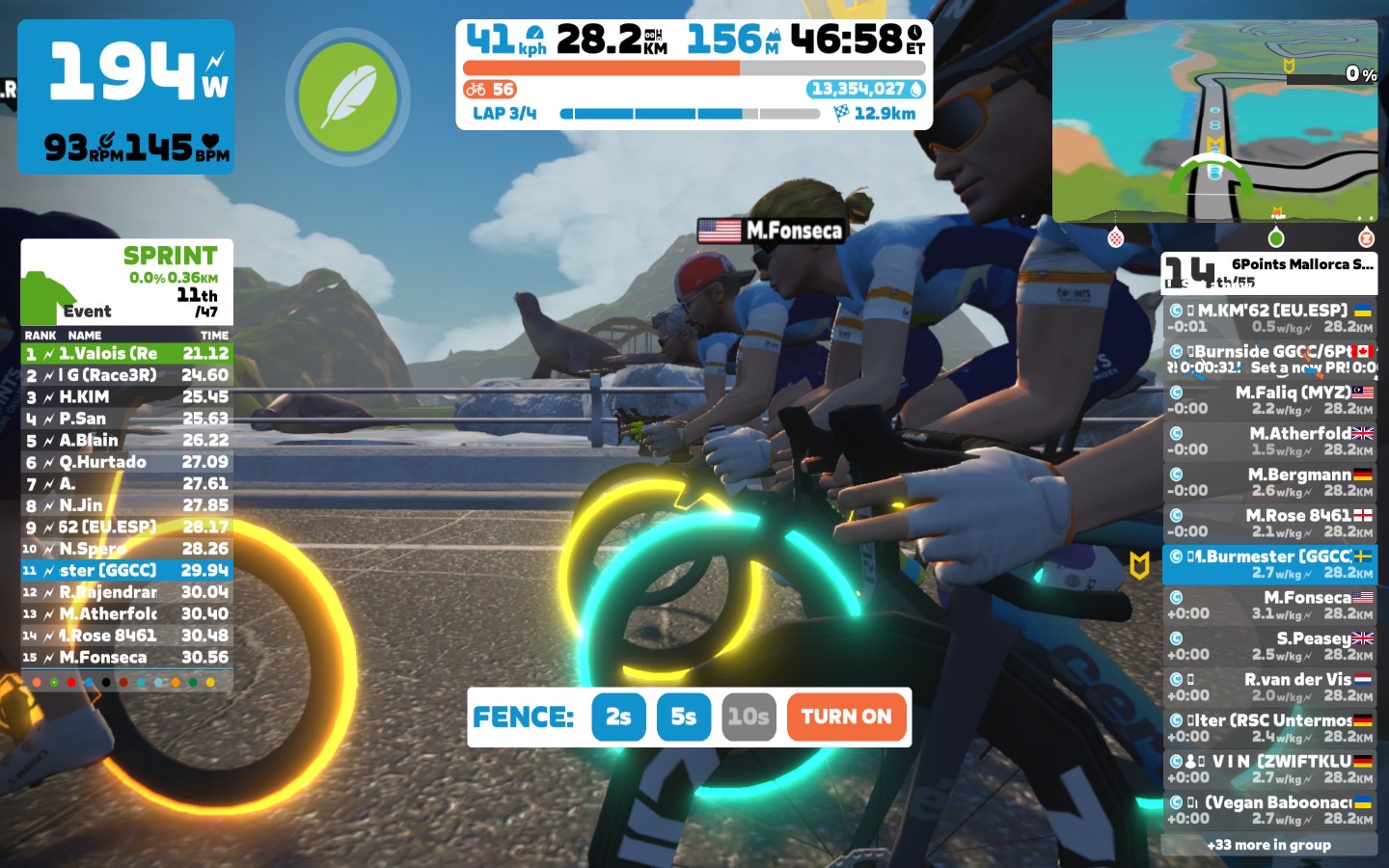 In total we had 3 sprints during the ride, no sprint on the last lap because of the optional mini-race.