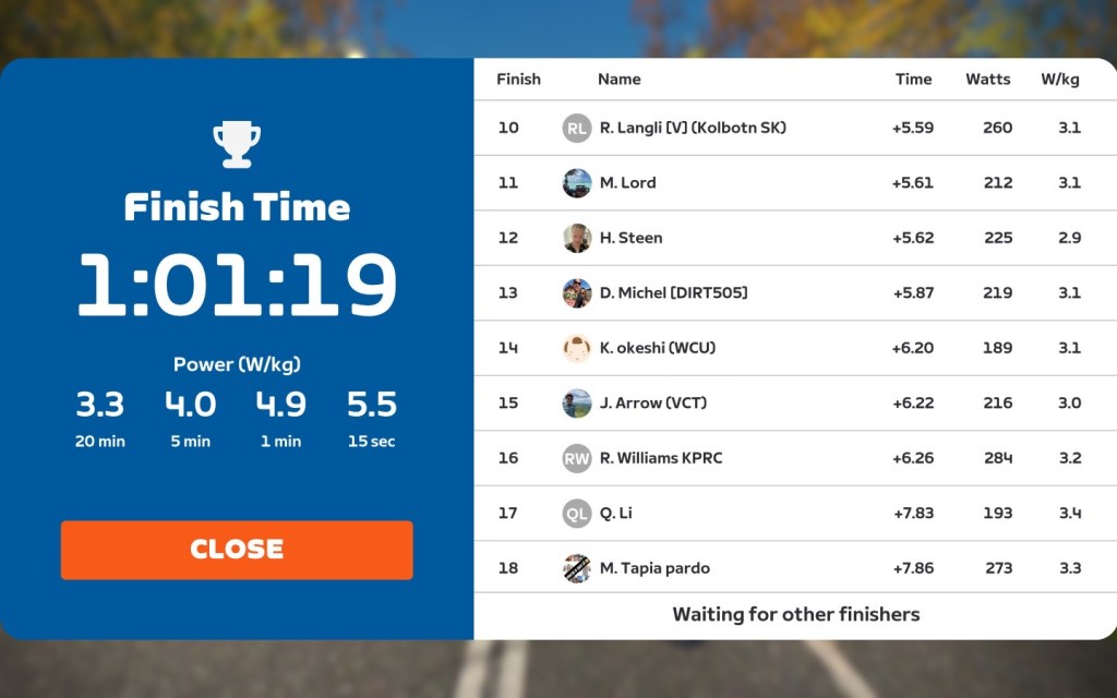 Unfortunately, because of the reconnect I lost the fence control from Zwift (an issue for a while when reconnecting to a ride).