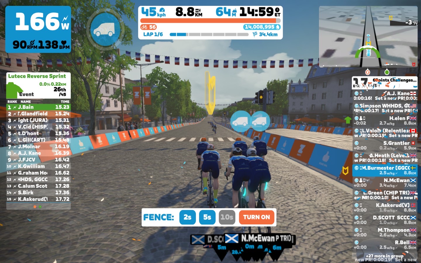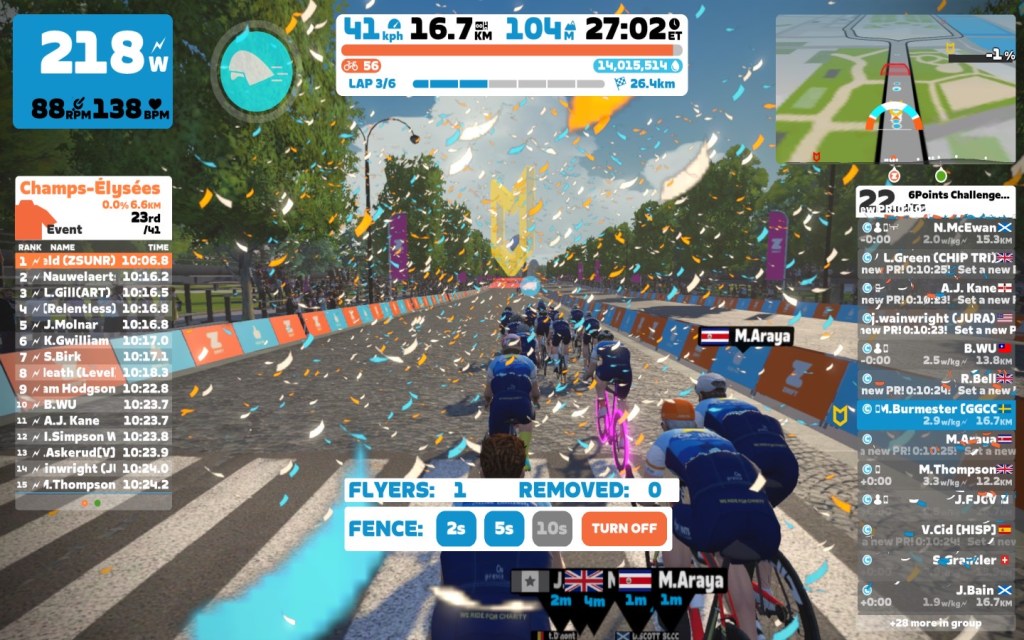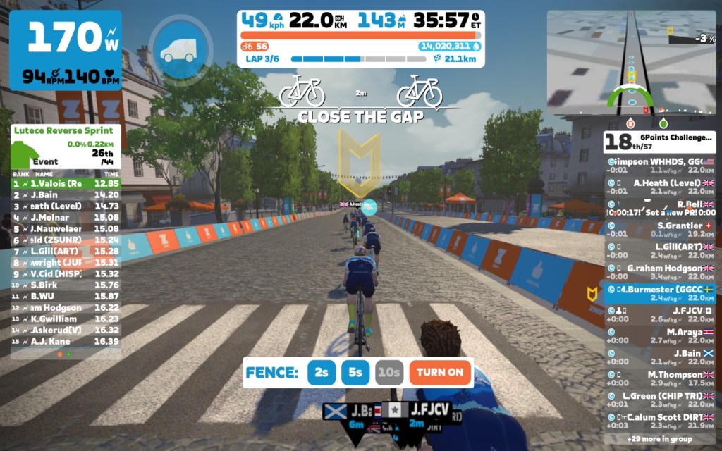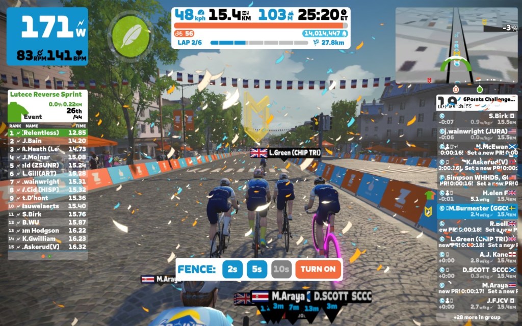 Today I was leading our 6Points Mallorca team through the virtual streets of the “Lutece Express” in Paris on the Zwift riding platform. In total it was a six lap training ride with an optional full lap mini-race at the end, never forget to sprint on each lap.