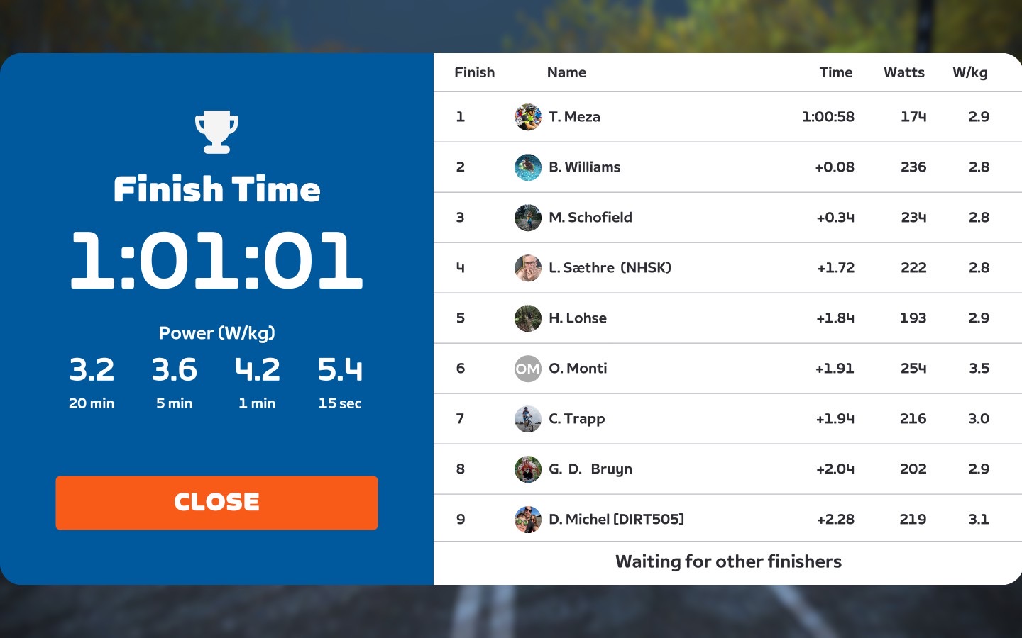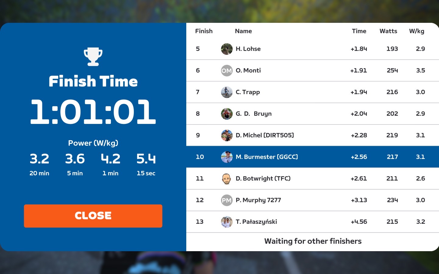 The fifth lap was a bit lower on average to get ready for the optional mini-race. It was up to each and every ride to go hard or at pace for the last lap.