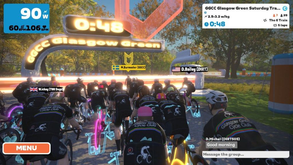 Today I was leading our GGCC team through the virtual streets of New York on the “The 6 train” course on the Zwift riding platform. In total it was a six lap training ride with no sprints this time. Of course we had our optional mini-race at the end of the ride.