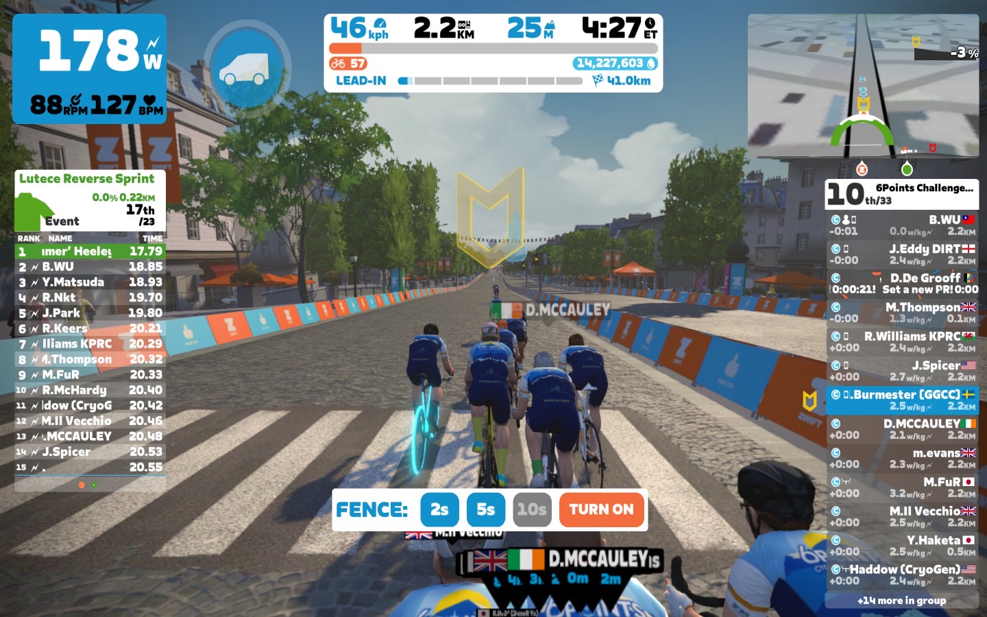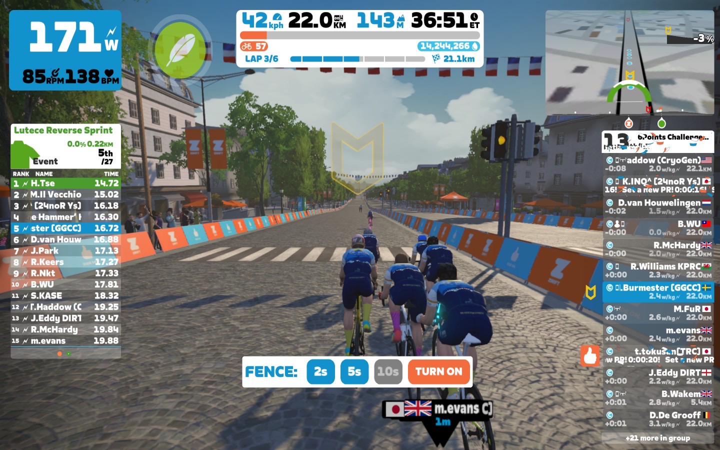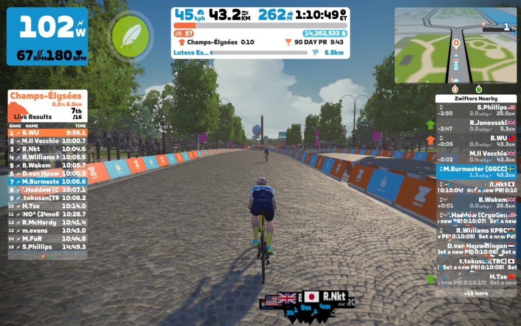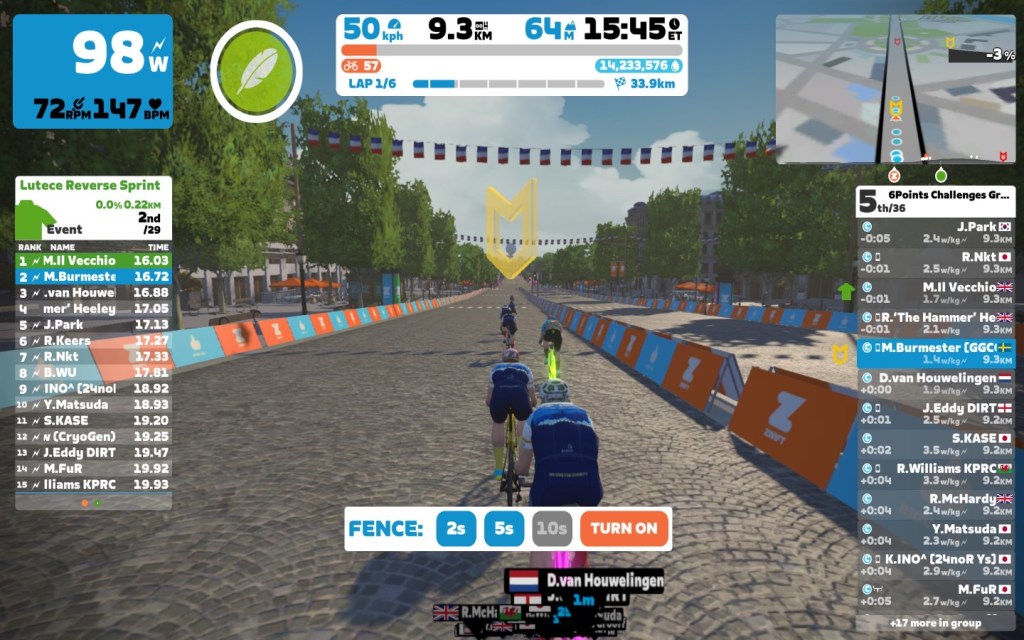 Today I was leading our 6Points Mallorca team through the virtual streets of the “Lutece Express” in Paris on the Zwift riding platform. In total it was a six lap training ride with an optional full lap mini-race at the end, never forget to sprint on each lap.