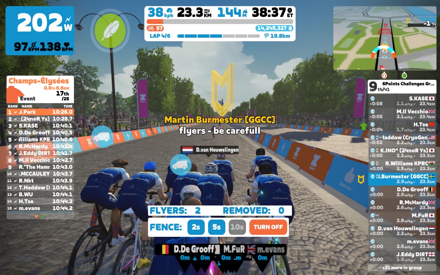And last but not least, we had our optional mini-race. The lap before the last one we went a little slower to prepare the racing legs. At the lap banner I gave the GO GO GO where we raised the power right from the beginning. We stayed together for quite some time until the racers went off on the straight towards the Arc de Triomphe. From the sprint banner all left in the racing group gave everything they had left in the legs.