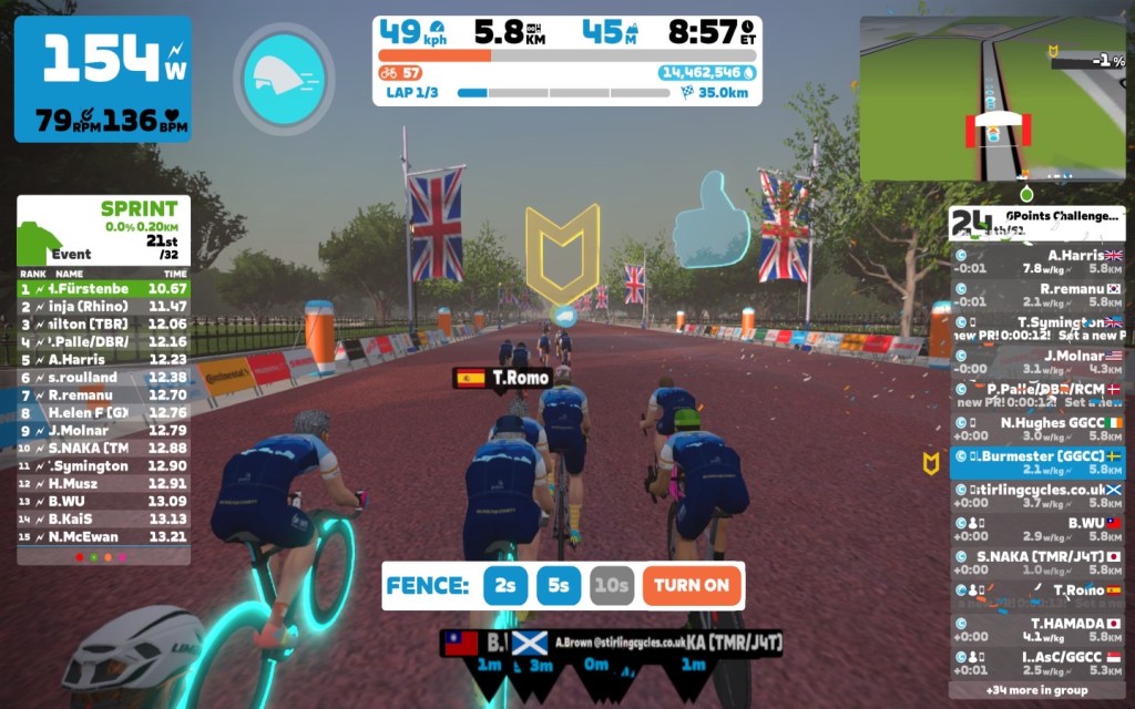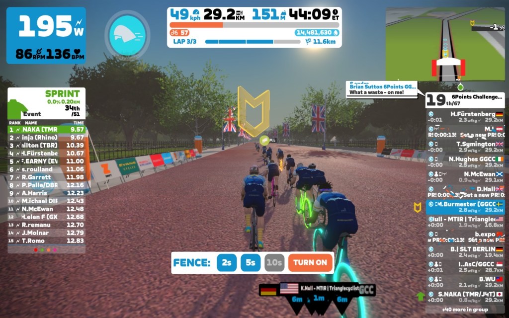 Today I was leading our 6Points Mallorca team through the virtual streets of London on the Zwift riding platform. In total it was a three lap training ride with some sprints and good chatting. Brian was our sweeper for today, thanks mate. Also thanks to Ian for helping out in the peloton.