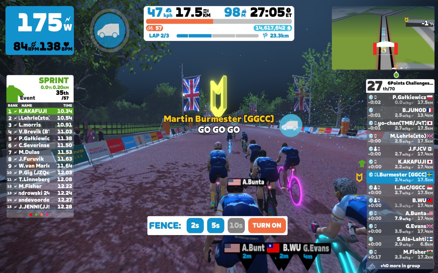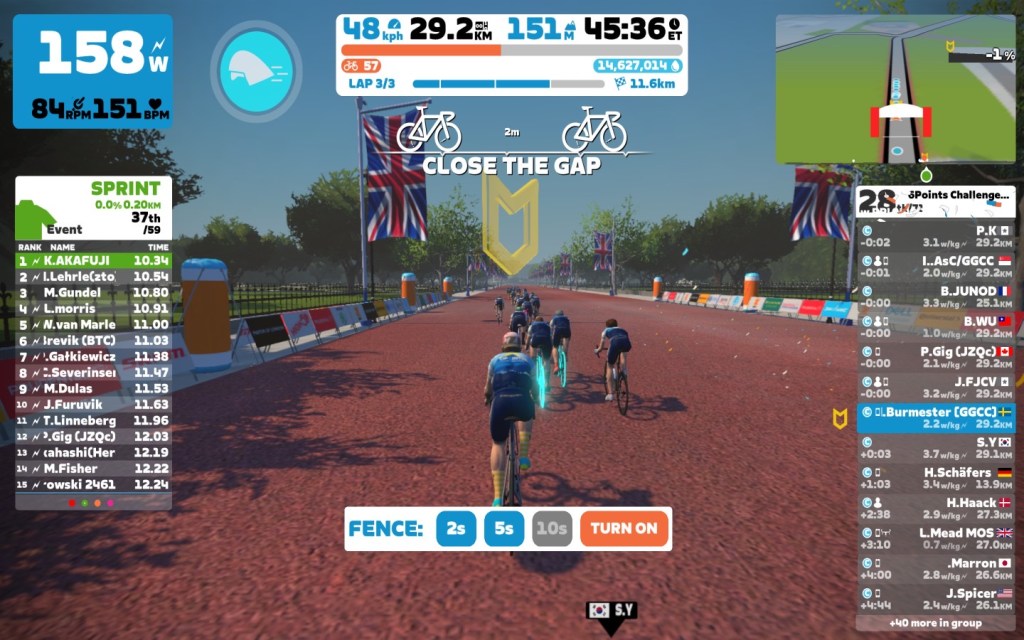 Today I was leading our 6Points Mallorca team through the virtual streets of London on the Zwift riding platform. In total it was a three lap training ride with some sprints and good chatting. Brian was our sweeper for today, thanks mate. Also thanks to Ian P. for helping out in the peloton.