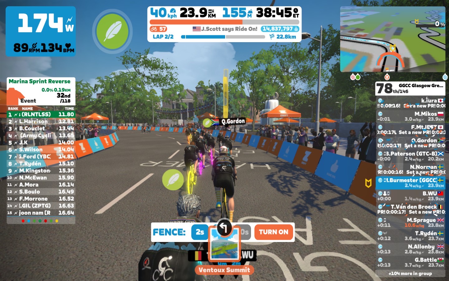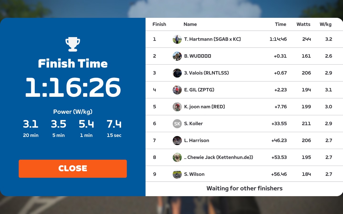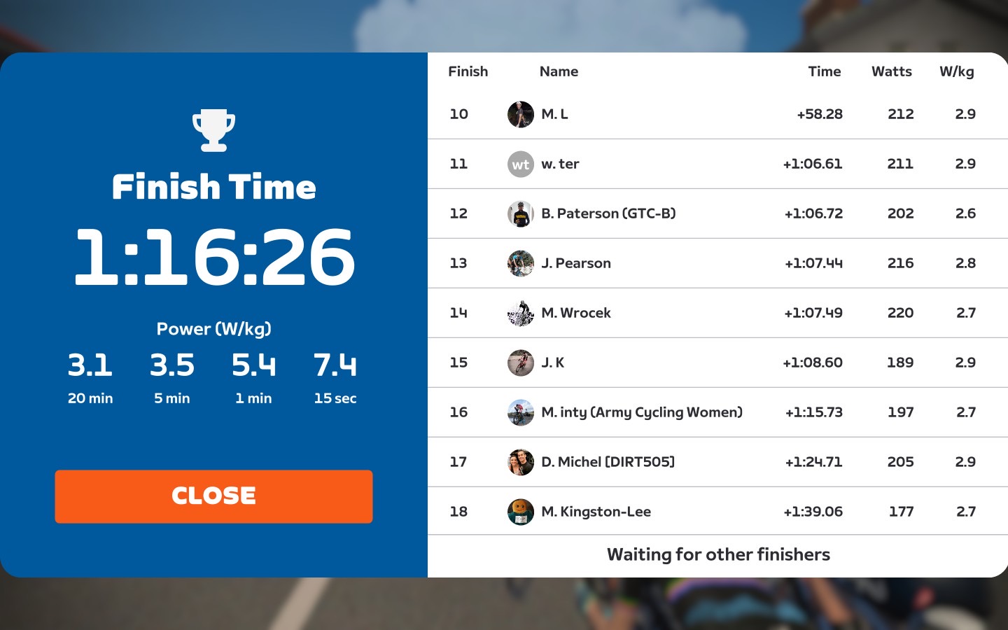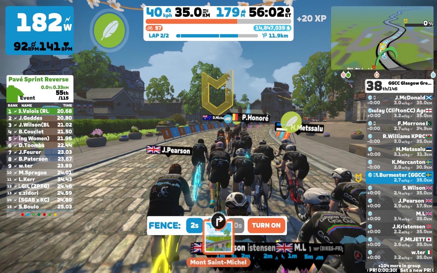 Today I was leading our GGCC team through the virtual streets of France on the “Casse-Pattes” course on the Zwift riding platform. In total it was a two lap training ride with two sprints, two climbs each lap and an optional mini-race at the end of the ride.