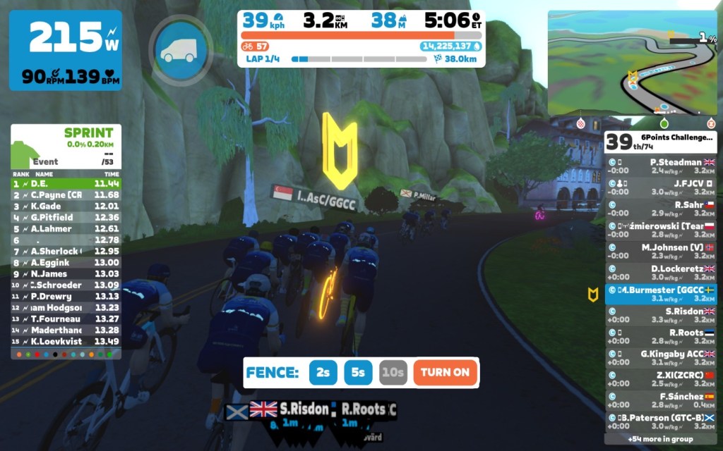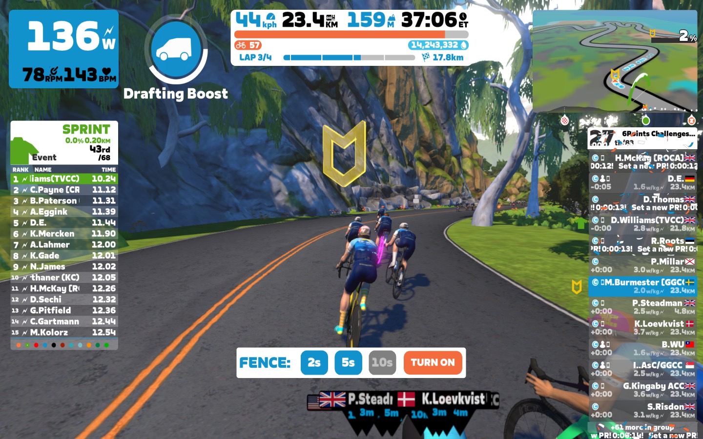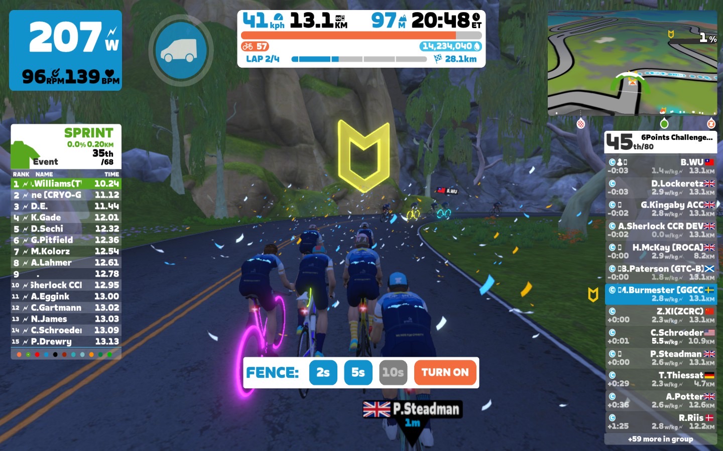 During the fourth lap we skipped the sprint because we had the start to our optional mini-race a bit after that. I put the fence down to 2sec until we hit the start and there I gave the GO for our racers.