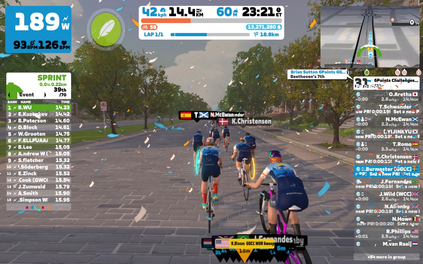 The first sprint went to B. Lee with a good time, but after that one B. Wu had the best time. In the third sprint some more riders could come below the 15sec mark – good job 👍🏻