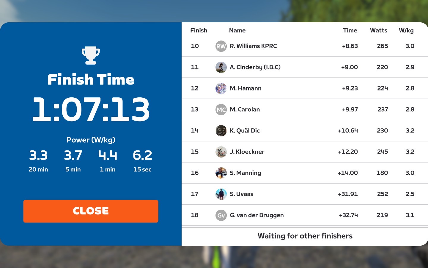 For a more details of the results check out Zwift Power