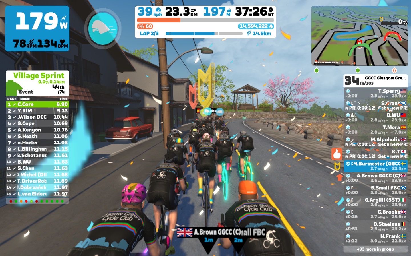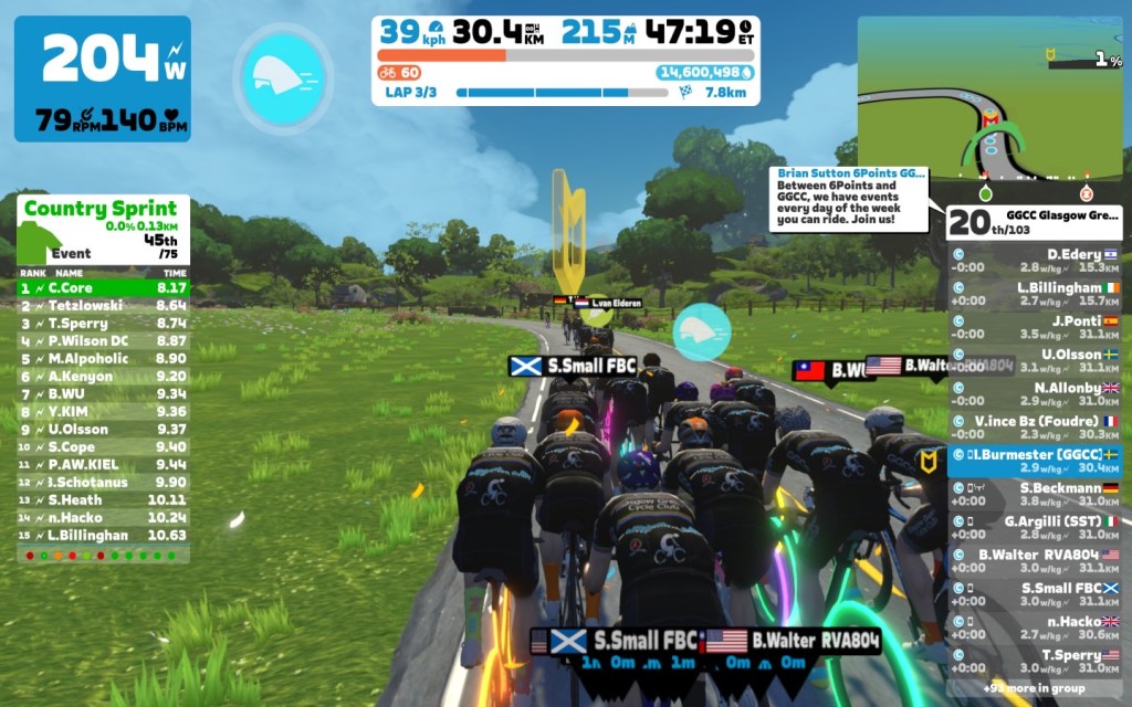Today I was leading our GGCC team through the virtual streets of the Flatland Loop on the Zwift riding platform. In total it was a three lap training ride with some good sprints and an optional mini-race.