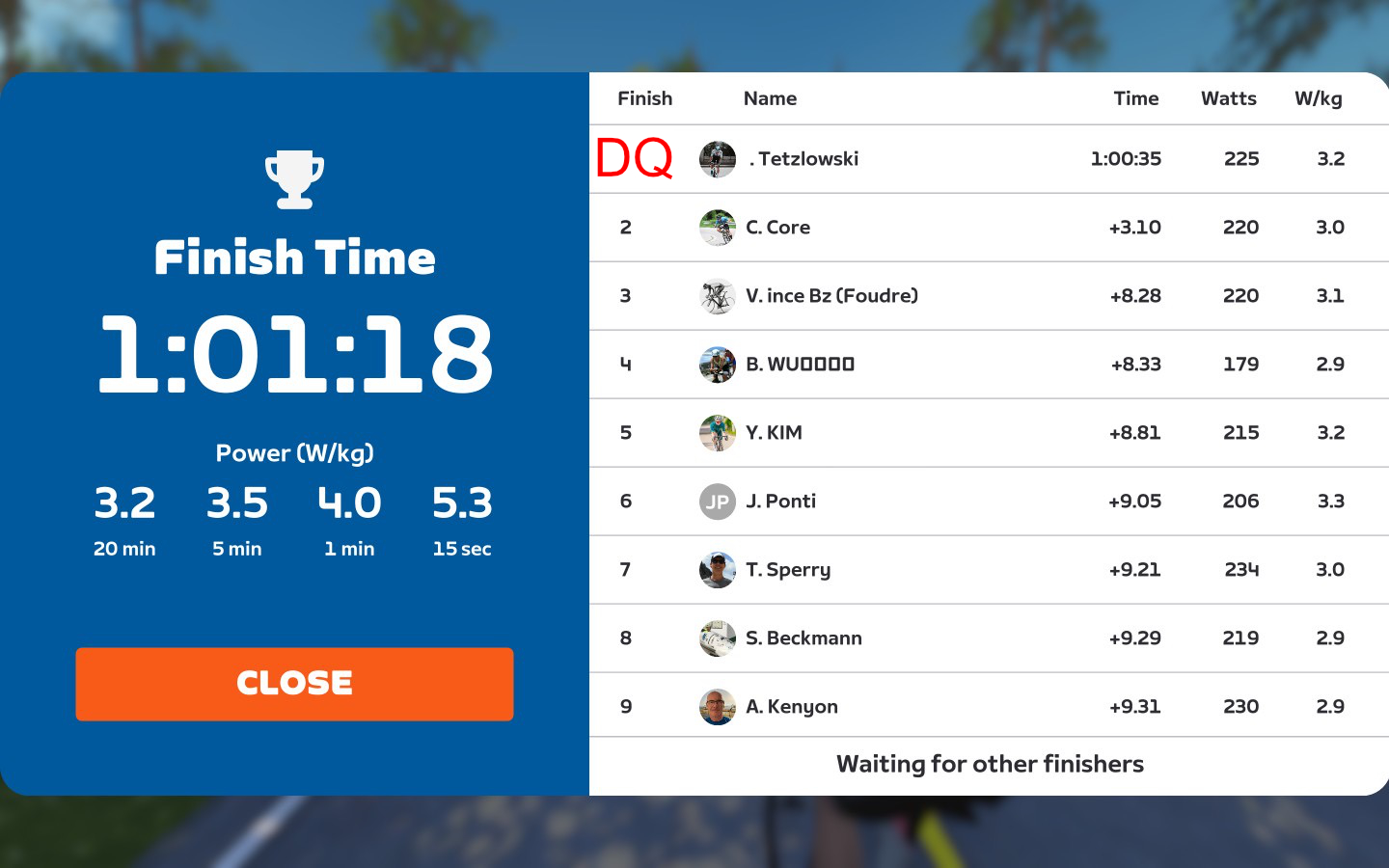 Unfortunately, some guys went early for our optional mini-race and got a DQ. Let’s check the results: