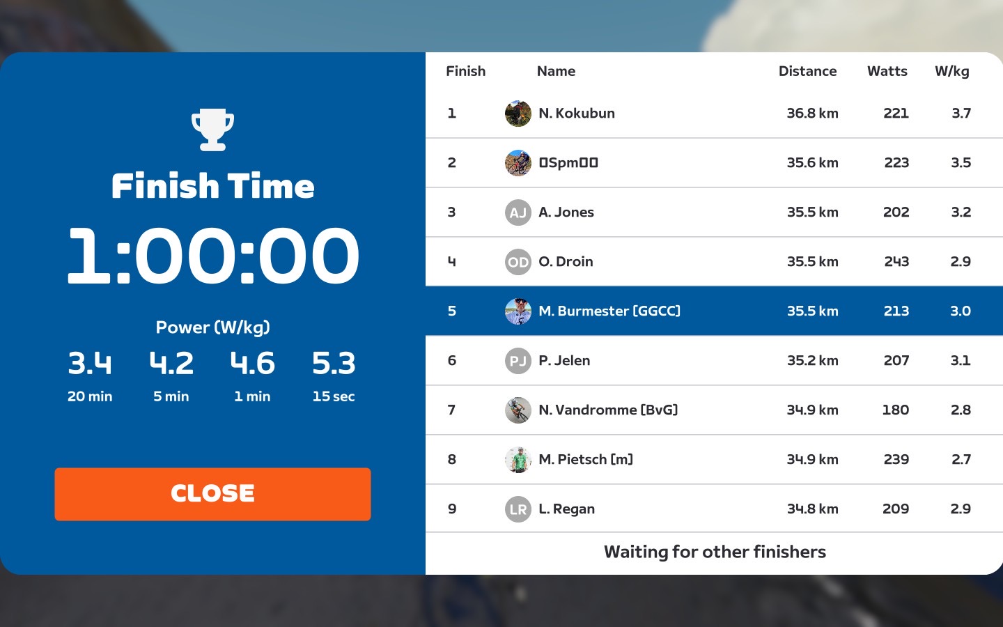 After the KOM we went with a steady pace towards the end. The front riders were into the 2’nd climb when we hit the 60min barrier for this ride. So why not going a 2’nd time the whole way up 😁