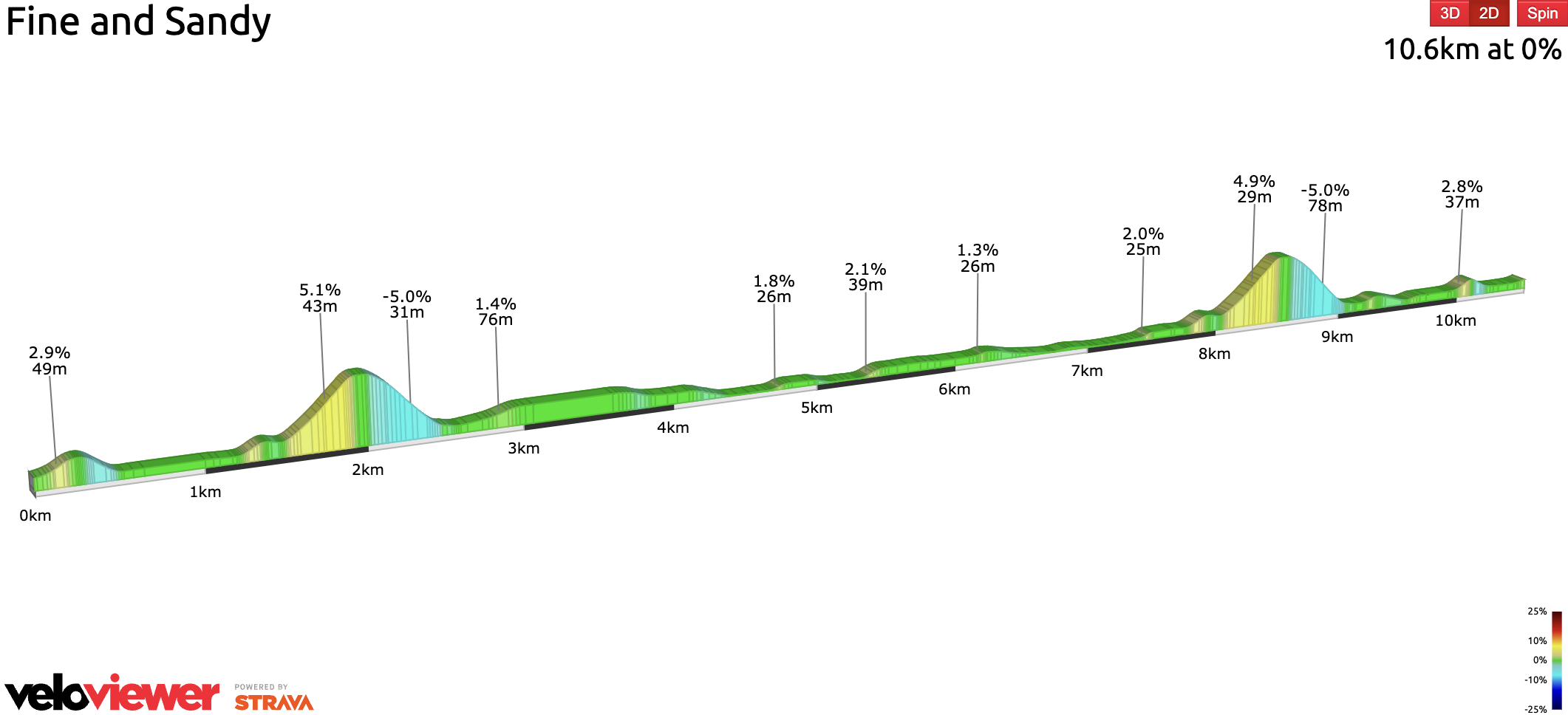 As always on the ride towards the first sprint we did a good warm-up at around 2,6W/kg. The first sprint came already after around 3km where the sprinters could show off their legs for the first time. The second sprint came after 3 more kilometers. Basically the course is split into three sections.