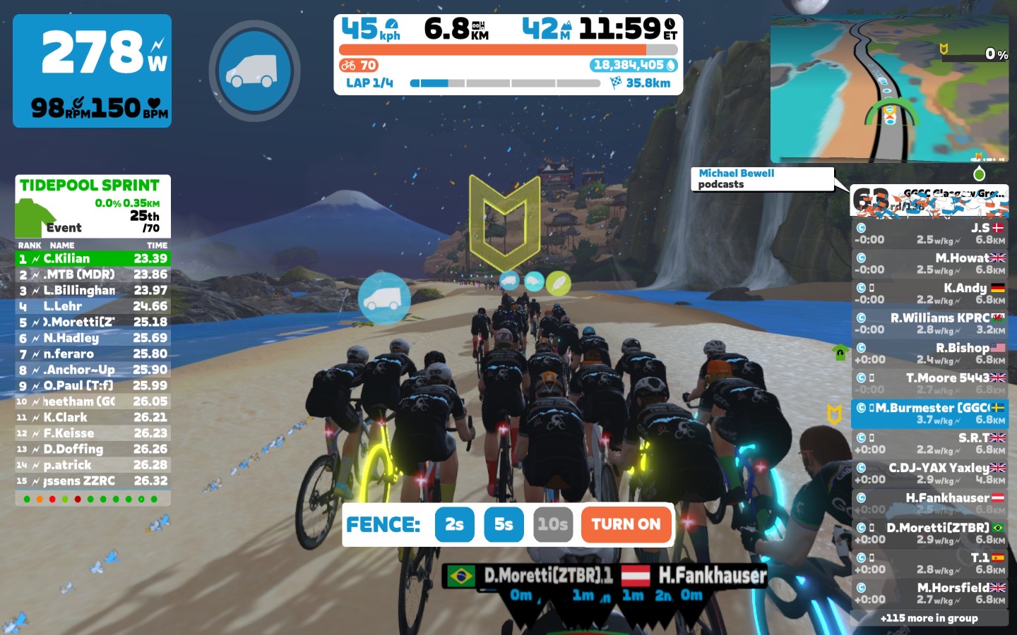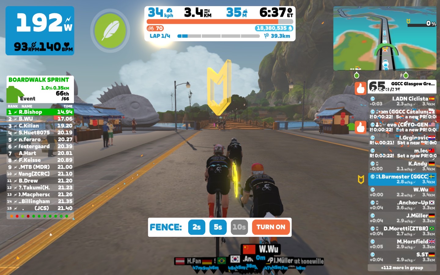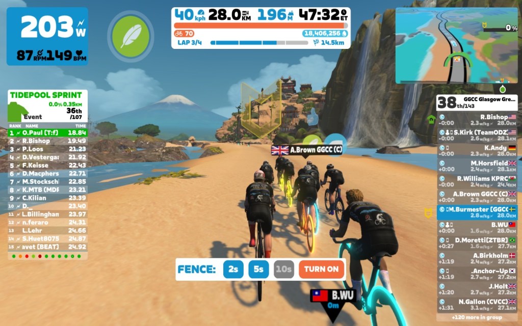 Today I was leading our GGCC team through the virtual streets of Makuri Islands on the “Fine and Sandy” course on the Zwift riding platform. In total it was a four lap training ride with two sprints each lap and an optional mini-race at the end of the ride.