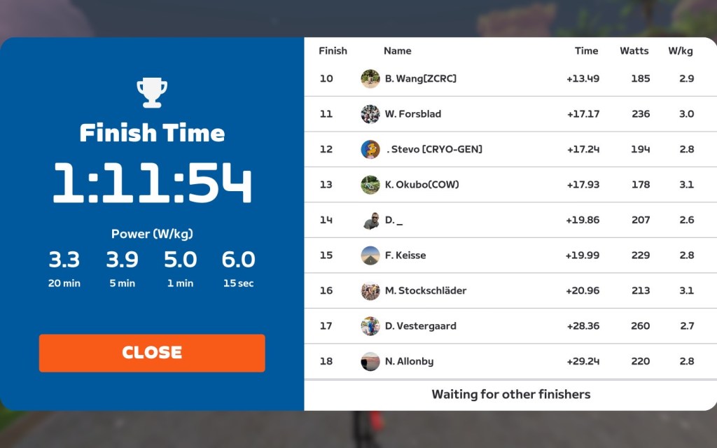 The optional mini-race started from the first sprint banner of the fourth lap. The hardness of the course made the race a little salty 😈
