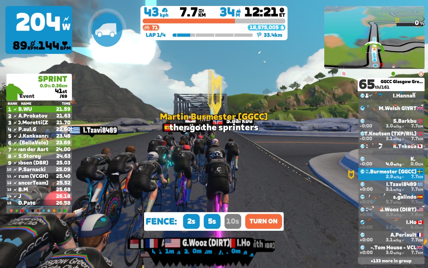 After the sprints were done and dusted we relaxed a bit i preparation for the upcoming minirace. I brought the fence down to 5sec first and by the lap banner down to 2sec for having a fair race start for our racers.
