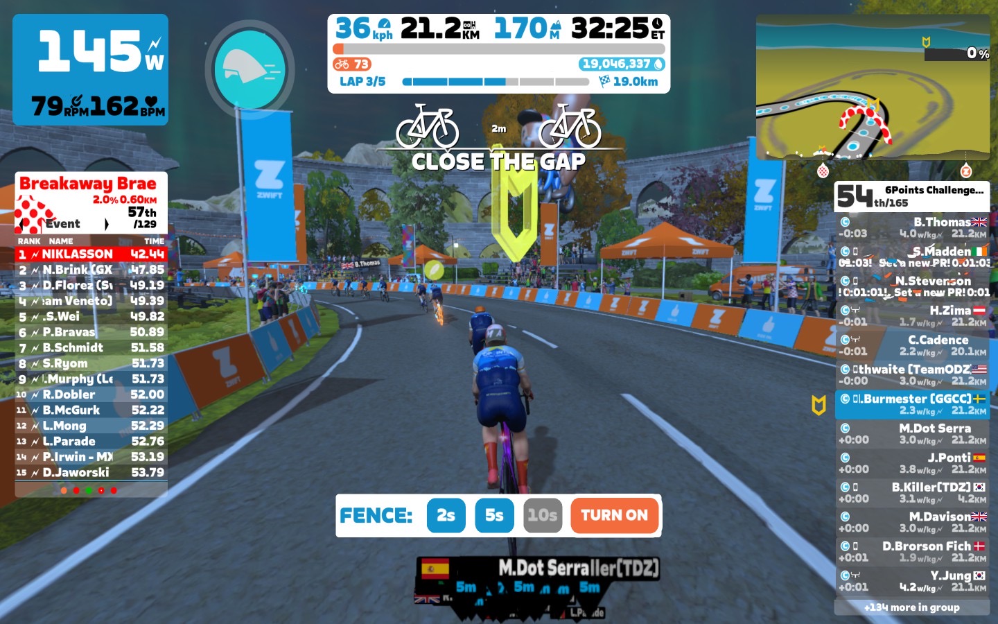 We started a little lower on pace for warming up the legs before going into the Breakaway Brae. Here it’s important keeping the power up through the steep bit to maintain a good pack position.