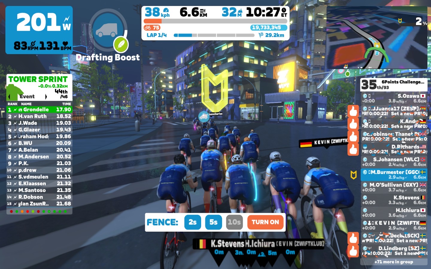 Today I was leading our 6Points Mallorca team through the virtual streets of Makuri Island on the “Electric Loop” course on the Zwift riding platform. In total it was a four lap training ride with four sprints an optional mini-race at the end of the ride.