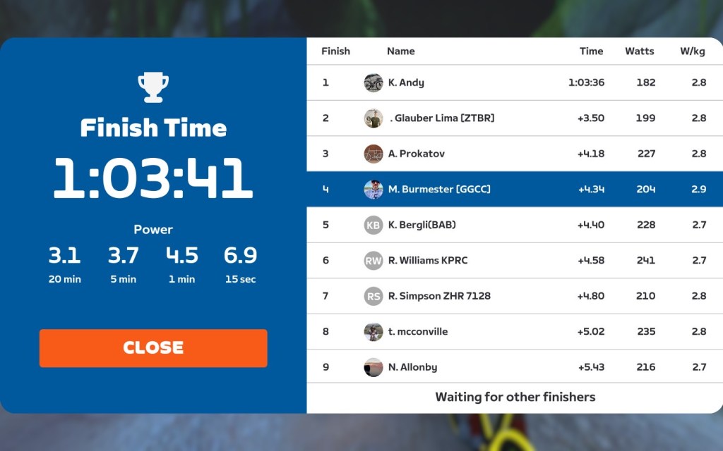 Today I was leading our GGCC team through the virtual streets of Watopia on the Zwift riding platform, the “Sugar Cookie”. Thanks RogerB. for going in red and helping out today 👍🏻