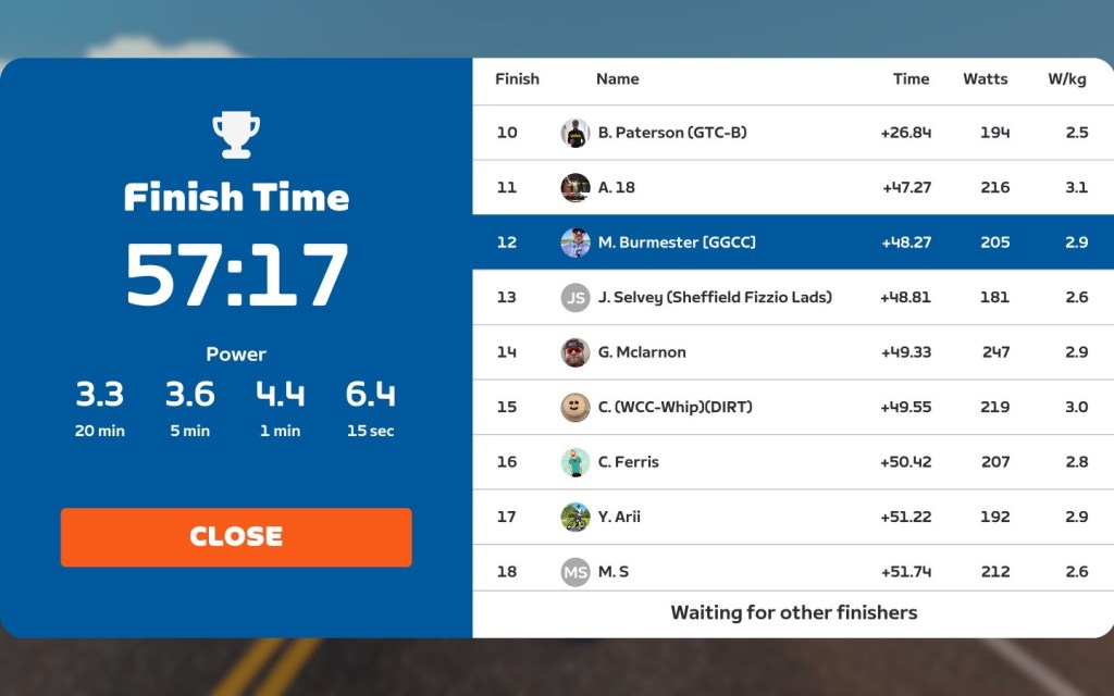Today I was leading our GGCC team through the virtual streets of Watopia on the Zwift riding platform, the “Tempus Fugit”. Thanks RogerB. for going in red and helping out today 👍🏻