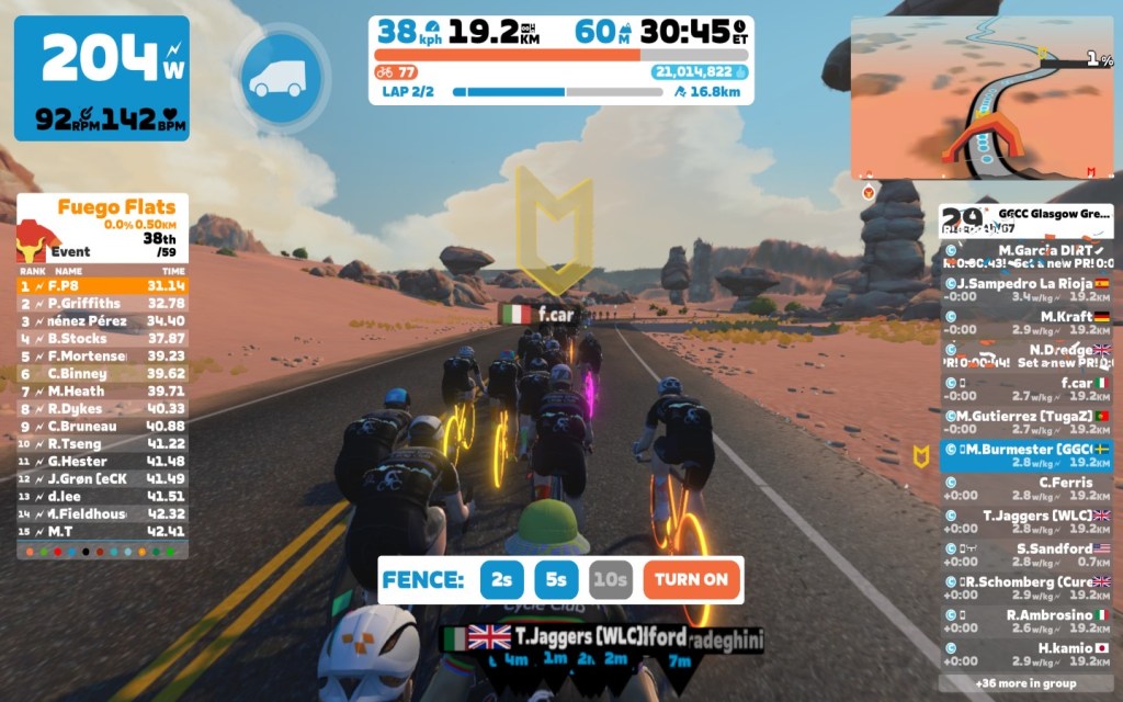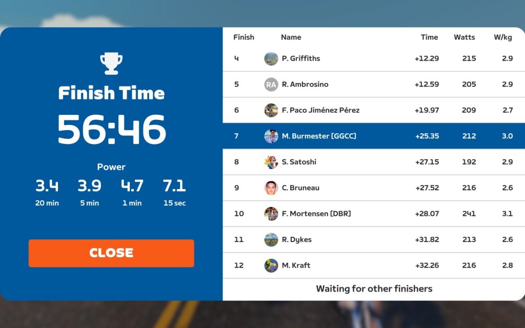 Today I was leading our GGCC team through the virtual streets of Watopia on the Zwift riding platform. In total it was a two lap training ride on the “Tick Tock” course.