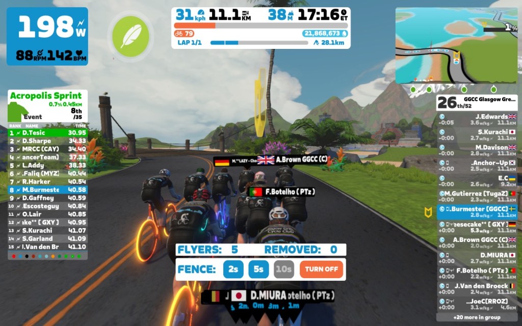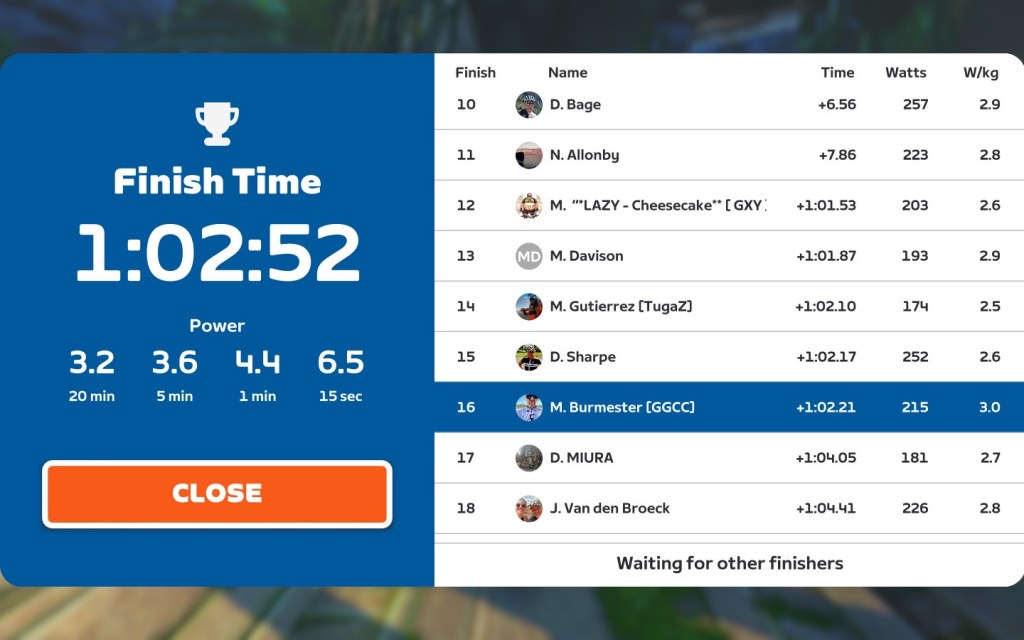 Today I was leading our GGCC team through the virtual streets of Watopia on the Zwift riding platform. Today we did the “Sugar Cookie”, my all time favourite. Thanks Jorge B. for doing the sweeping (good job) and Ian for helping out in the peloton today 👍🏻