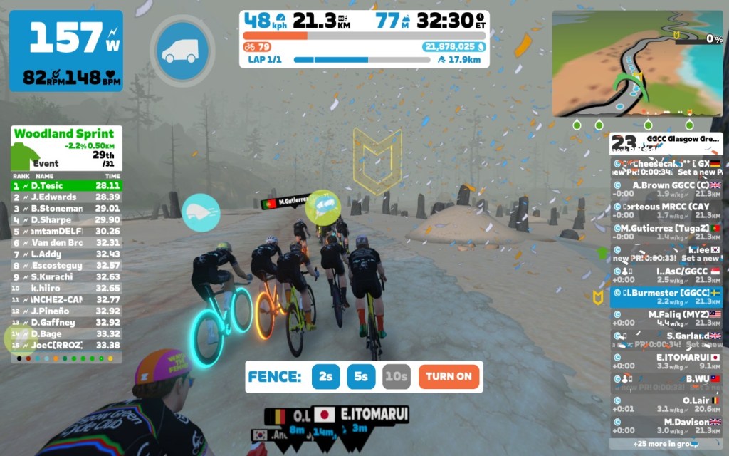 I brought the fence to 2sec and we went nicely along the bypass road. At the arch back to the jungle I gave the GO GO GO for our racers – and off they went.