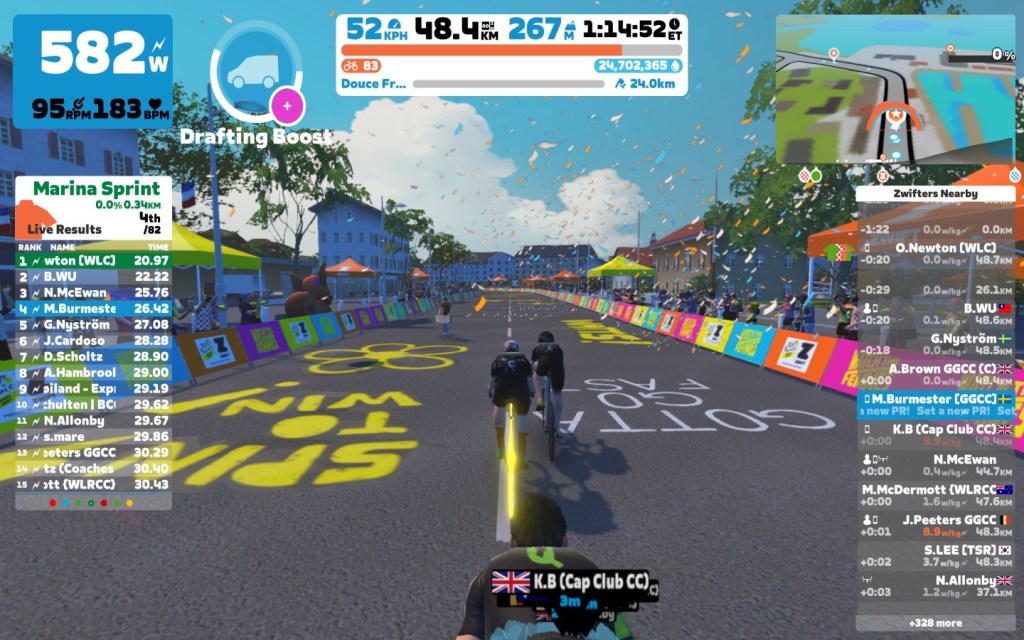 Today I was leading our GGCC team through the virtual streets of France on the Zwift riding platform. In total it was a two lap training ride on the “Douce France” course.