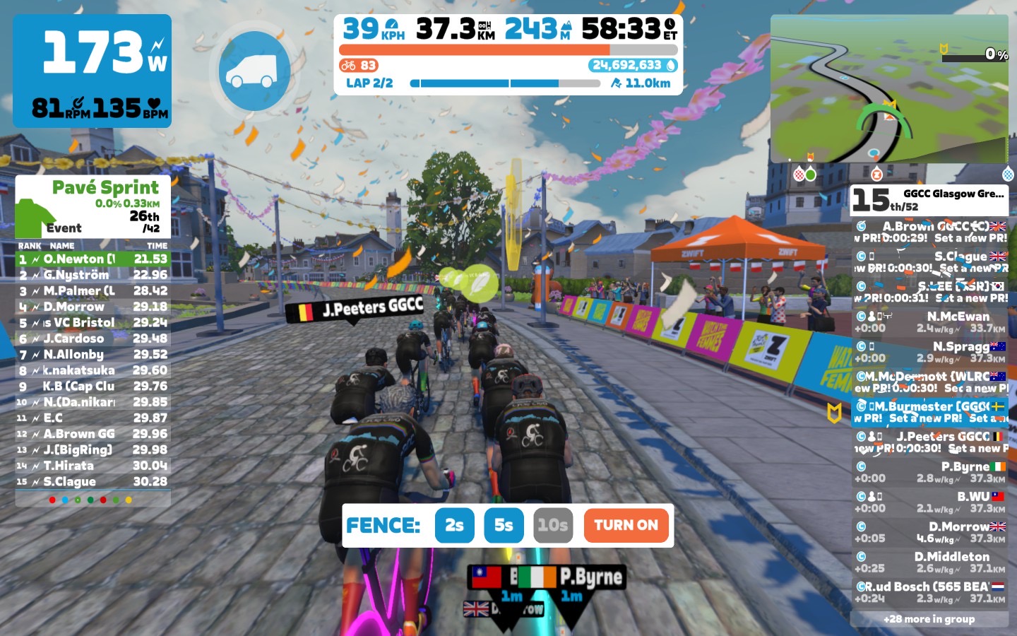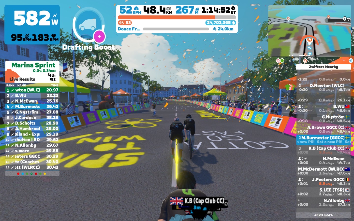 Today I was leading our GGCC team through the virtual streets of France on the Zwift riding platform. In total it was a two lap training ride on the “Douce France” course.