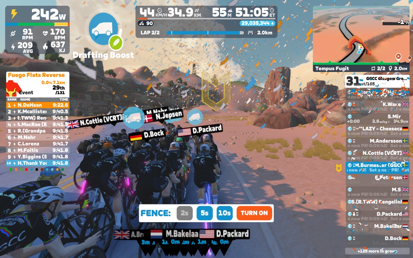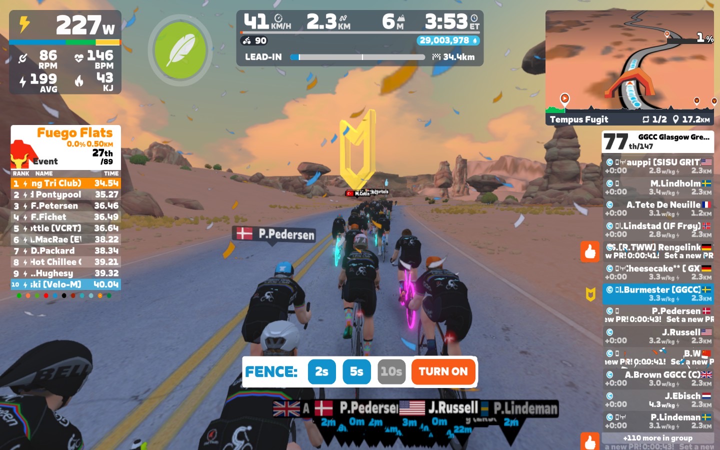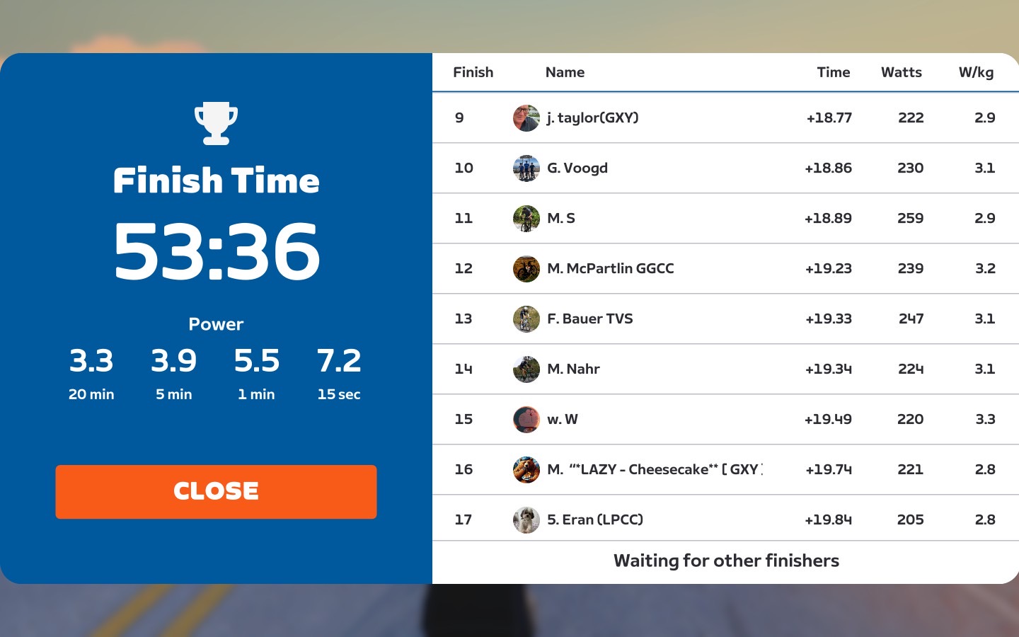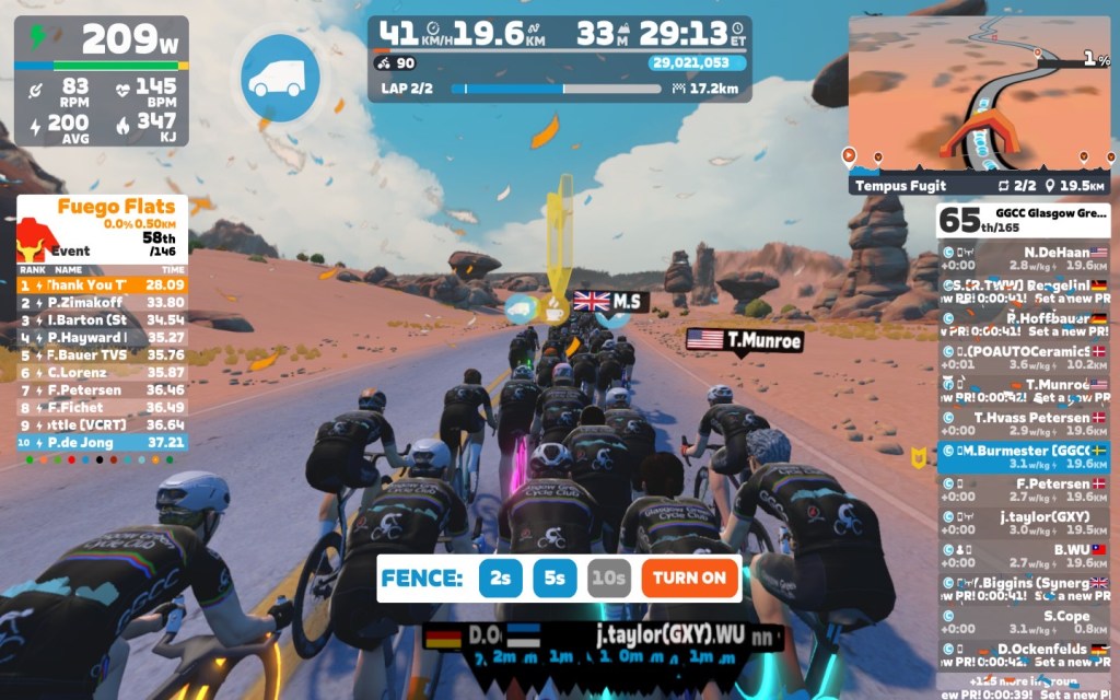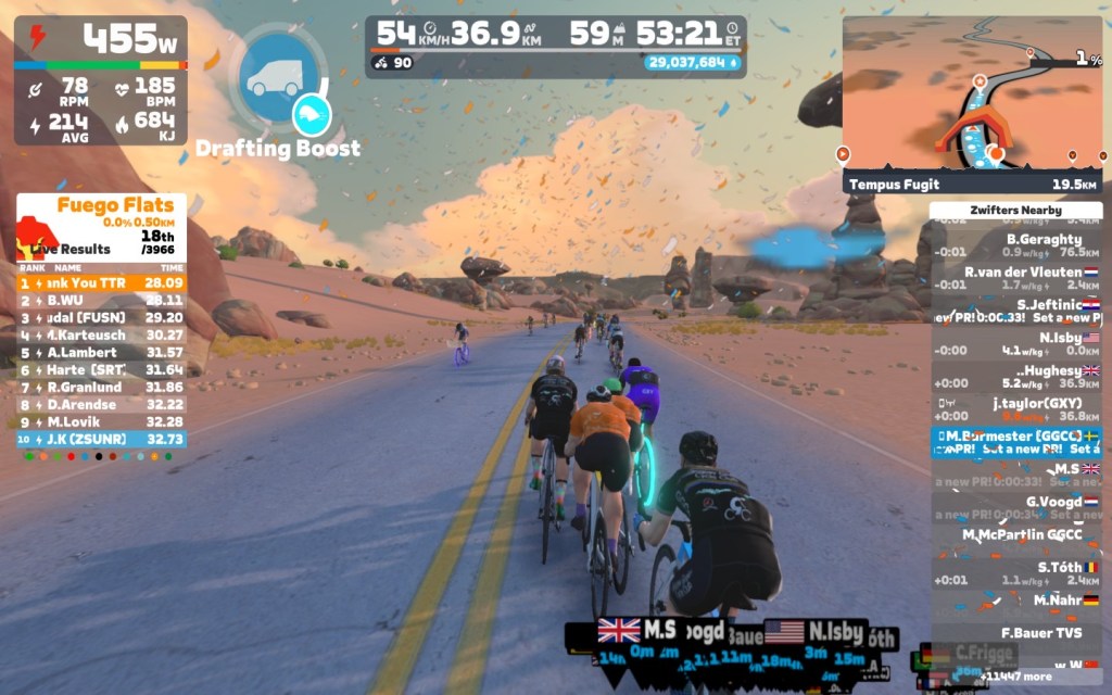 I led our GGCC team through the virtual streets of Watopia today. We used the Zwift riding platform, specifically the “Tempus Fugit” course. Thanks Jam S. for going in red and Roger B. helping out today 👍🏻