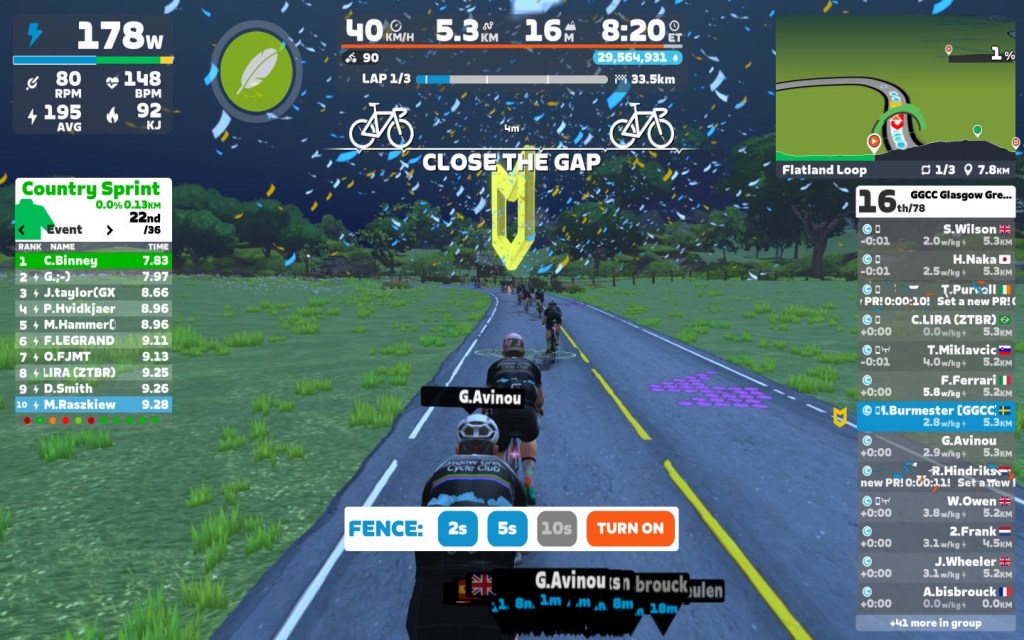 Basically we went down in power a bit for preparation of our racers legs. Slowly I brought the fence down to 5sec first and 2sec before the race start. We had the group good together for having a fair race start.