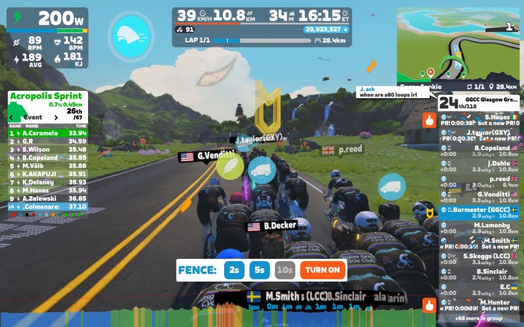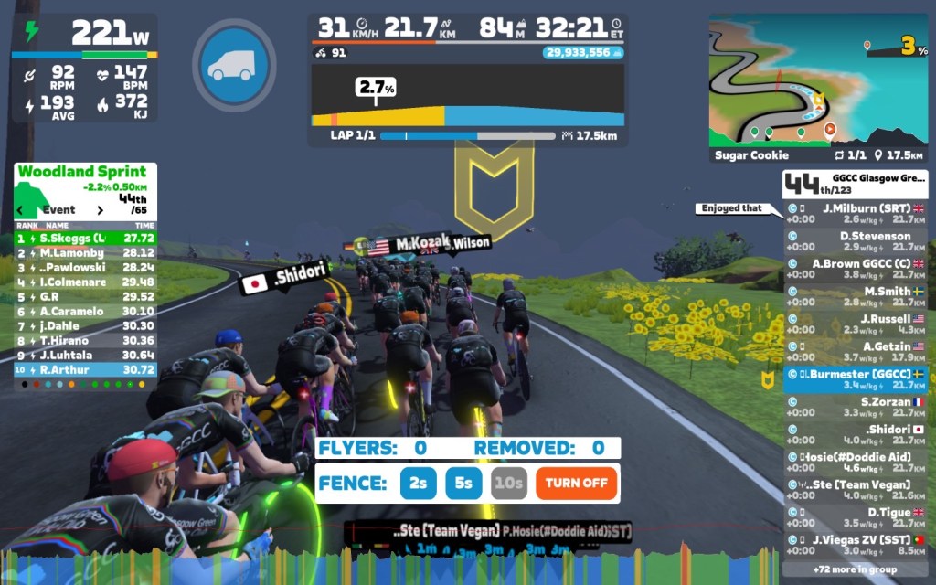 Today I was leading our GGCC team through the virtual streets of Watopia on the Zwift riding platform. Today we did the “Sugar Cookie”, my all time favorite. Thanks Jam for going in red today. Good job!