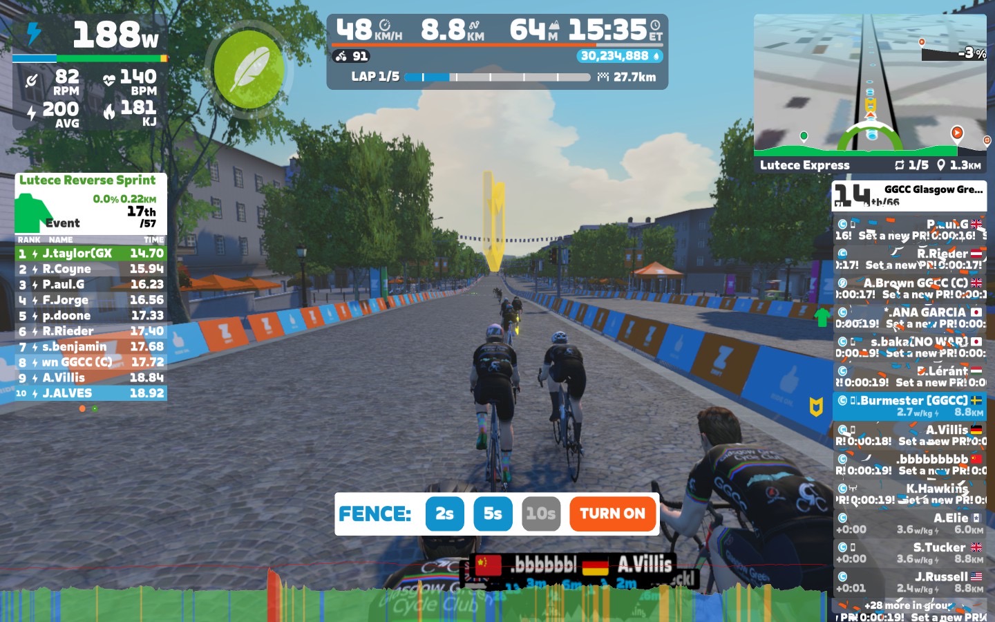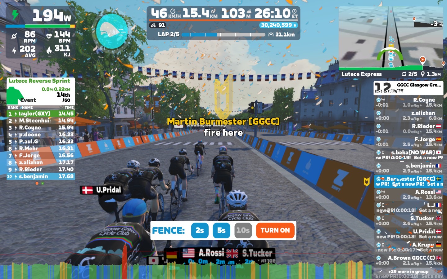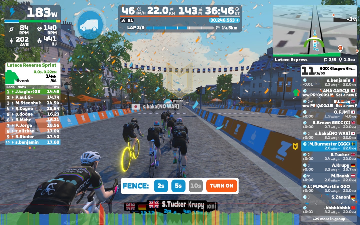 Today, I guided our GGCC team through the virtual streets of the “Lutece Express.” We rode in Paris on the Zwift riding platform. In total it was a five lap training ride with an optional full lap mini-race at the end.