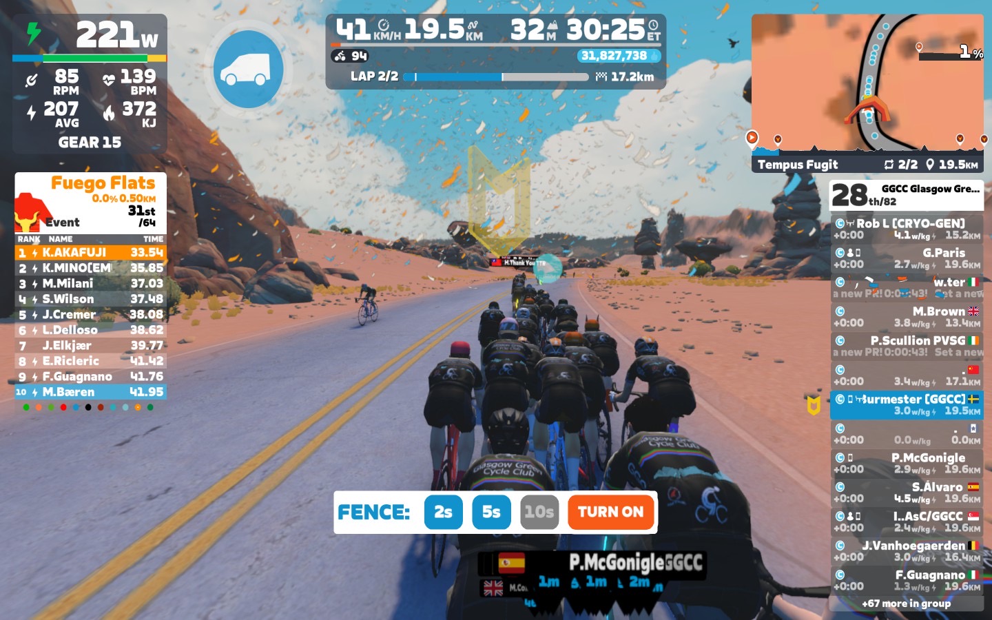 I led our GGCC team through the virtual streets of Watopia today. We used the Zwift riding platform, specifically the “Tempus Fugit” course. Thanks Jam S. for going in red and Ian for helping out today 👍🏻 As always we had some sprints and an optional mini-race at the end of the ride.