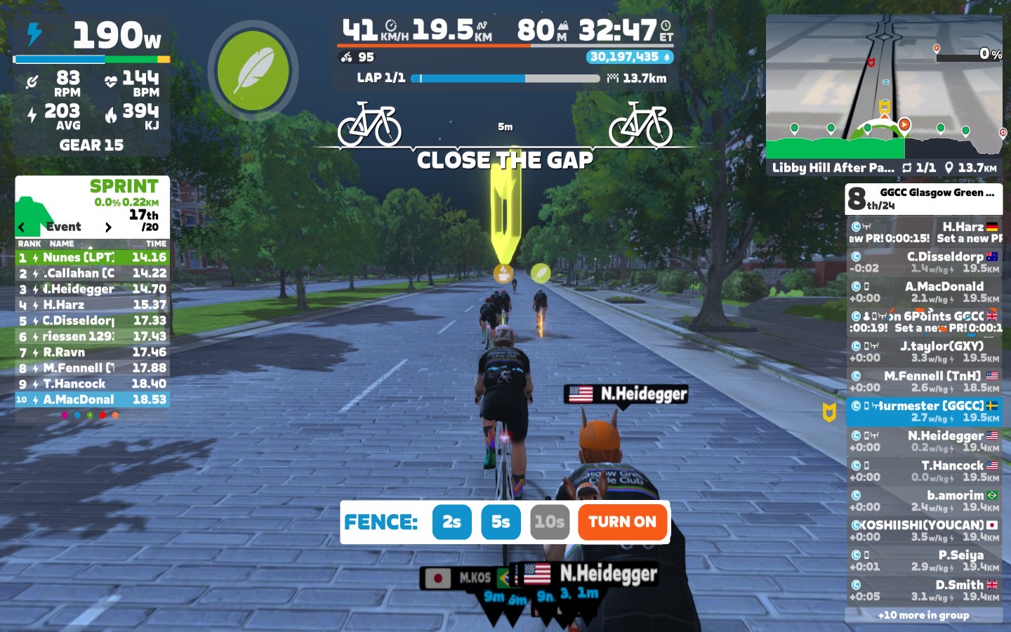 After the last lap we went towards “Libby Hill”. At the 5,3 km mark, from the sprint arch, I gave the GO GO GO for our optional mini-race.