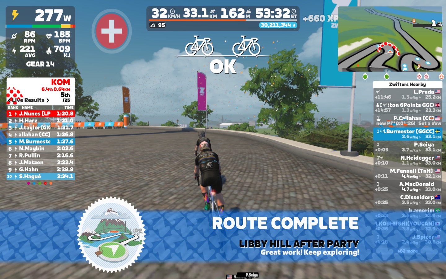 I led our GGCC team today. We rode through the virtual streets of Richmond on the “Libby Hill After Party” course on the Zwift riding platform. There were three sprints with an optional mini-race at the end of the ride.