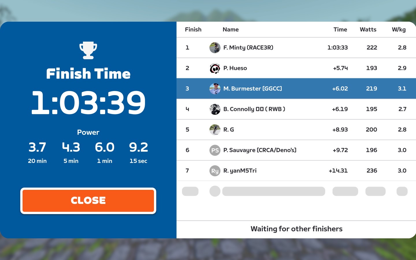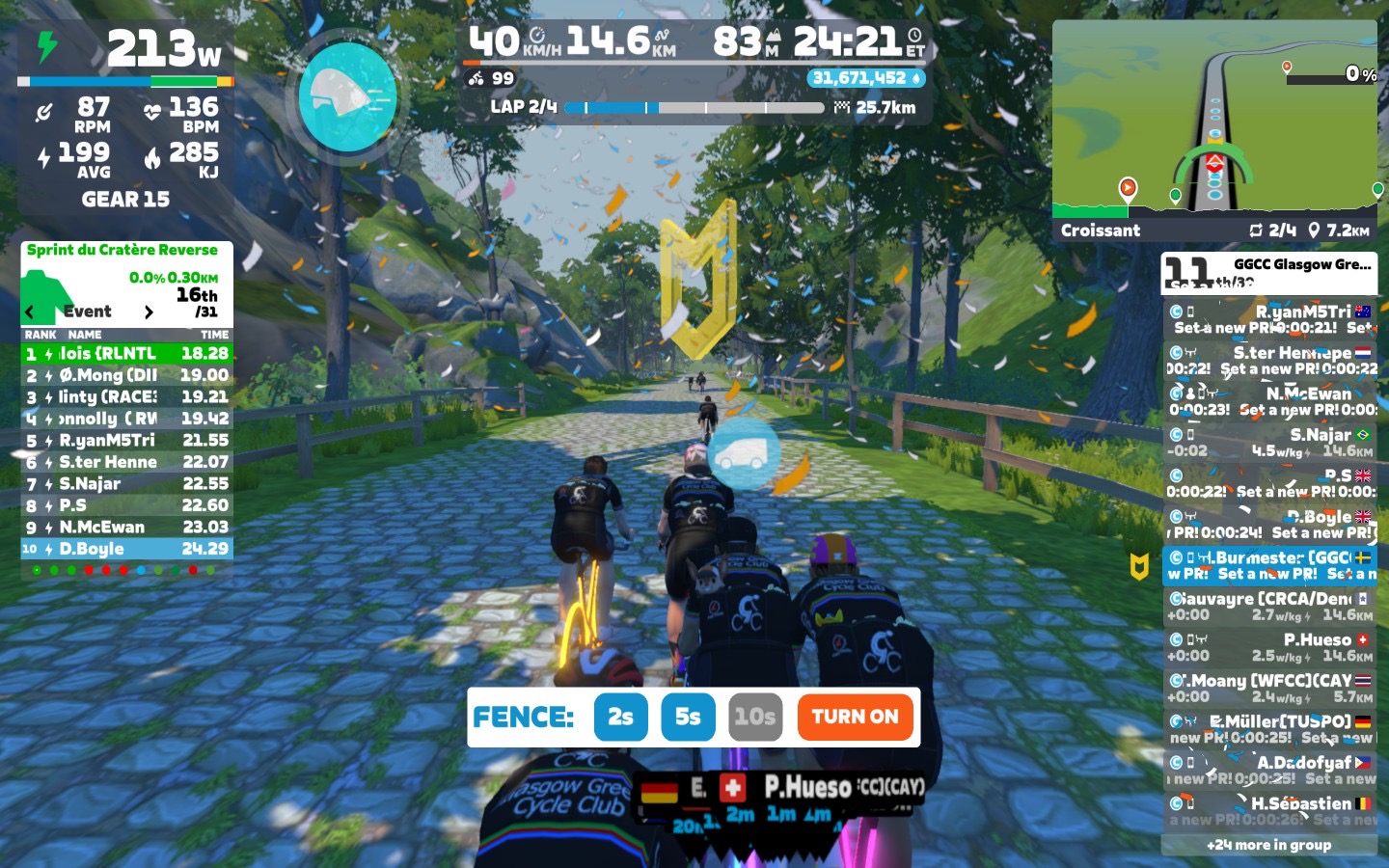 Today I was leading our GGCC team through the virtual streets of the “Croissant” course on the Zwift riding platform. In total it was a four lap training ride with some good sprints and an optional mini-race at the end.