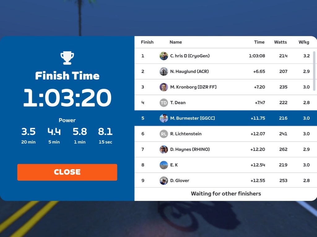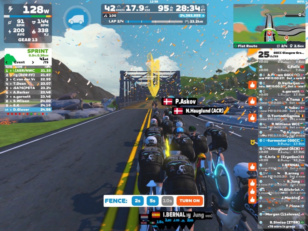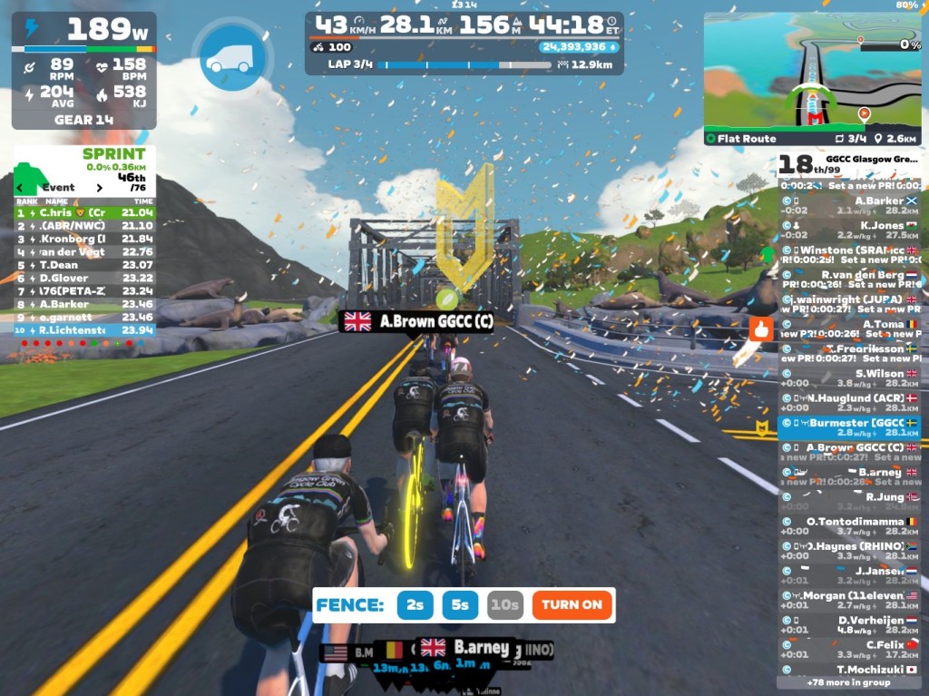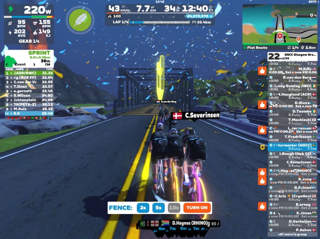 Today I had the pleasure of leading our GGCC team through the fast and scenic Watopia Flat Route on Zwift. The session consisted of four laps with an optional mini-race to finish things off.
