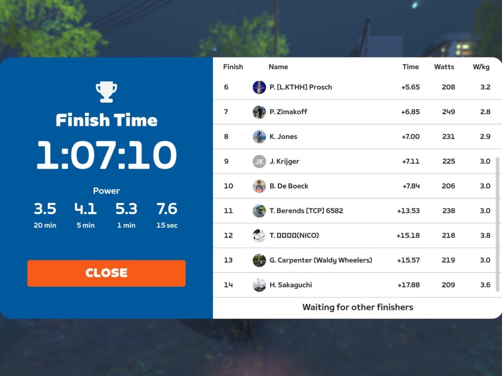 With my GO I also raised the power to lead a larger group towards the race finish. We had quite a long way with good power. We in the leader-group increased our power numbers to a higher level until the end. We continued until we pushed everything we had left for the last sprint of the ride. And here are the results: