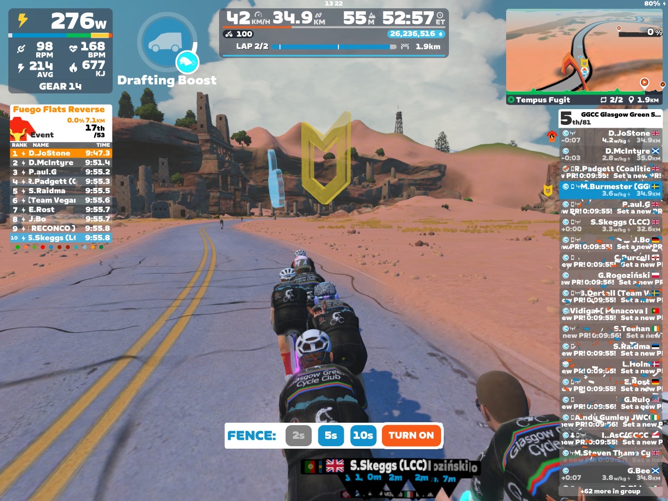 I led our GGCC team through the virtual streets of Watopia today. We used the Zwift riding platform, specifically the “Tempus Fugit” course. Thanks Roger for going in red and Jam and Ian for helping out today 👍🏻 As always on this course, we had two sprints. And there was our optional mini-race at the end of the ride.