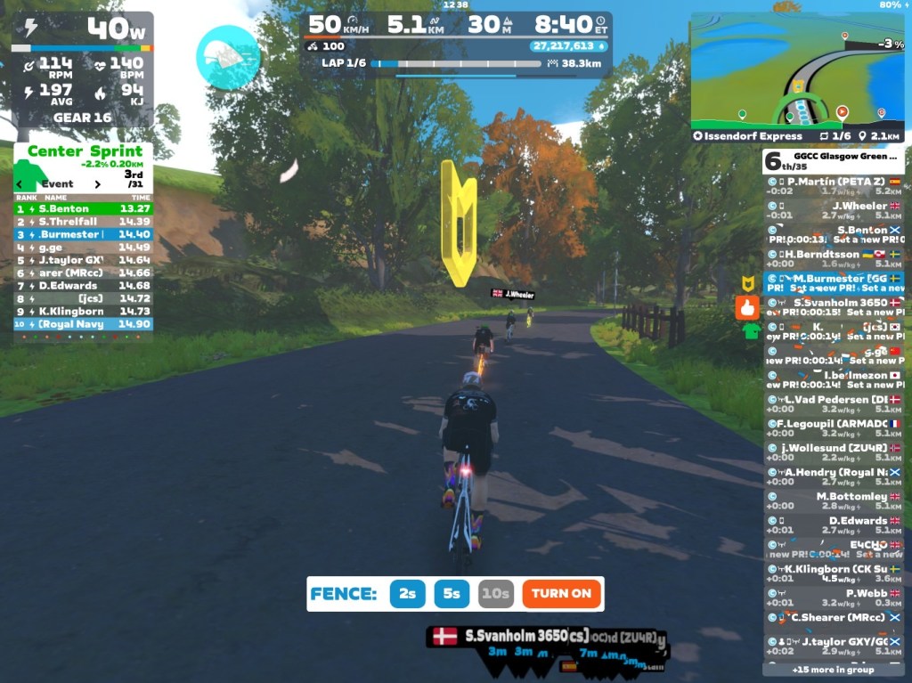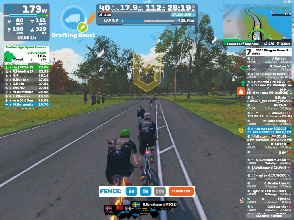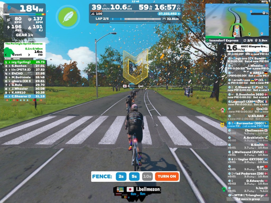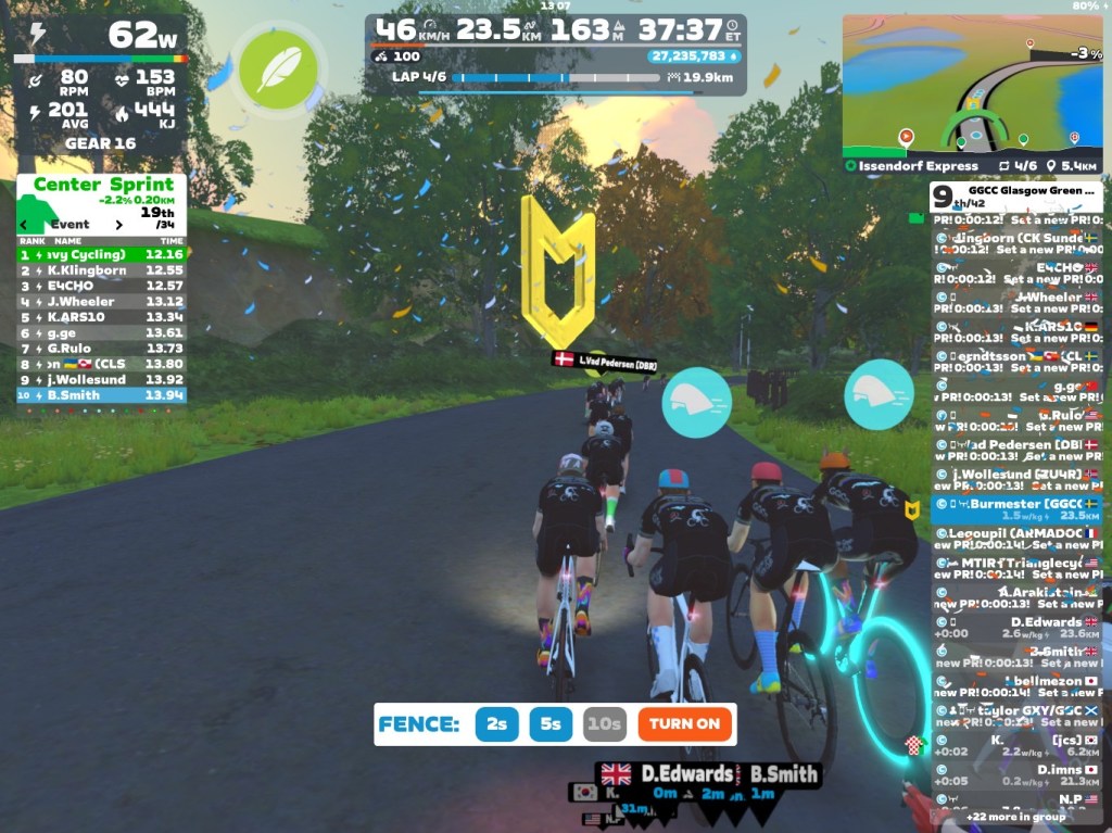 Today I was leading our GGCC team through the virtual streets of New York on the Zwift riding platform. We did six laps of the “Issendorf Express”. Thanks Jam and Roger for going in red today. Also thanks to Jamie for helping me out in the peloton – Good job mates!