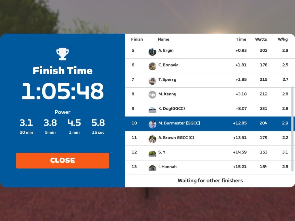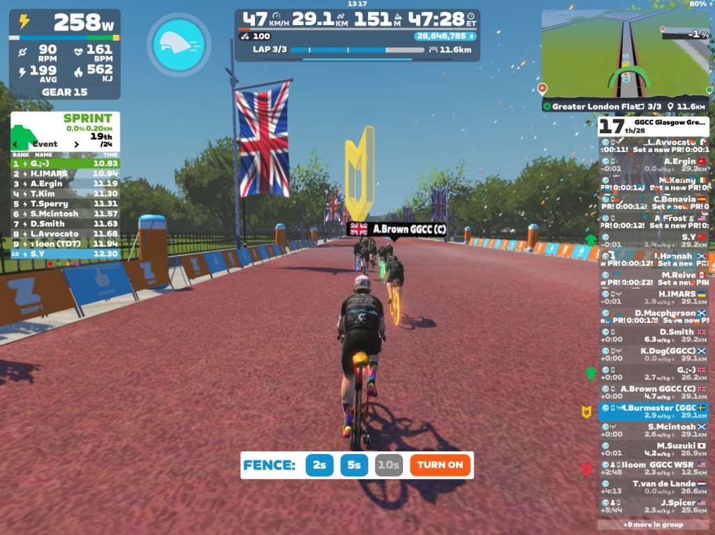 Today I was leading our GGCC team through the virtual streets of London on the Zwift riding platform. It was a three-lap training ride on my favorite UK course: “Greater London Flat”.