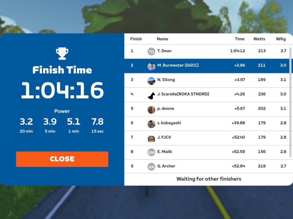 Today I was leading our GGCC team through the virtual streets of the “Flatland Loop” on the Zwift riding platform. In total it was a three lap training ride with some good sprints and an optional mini-race.